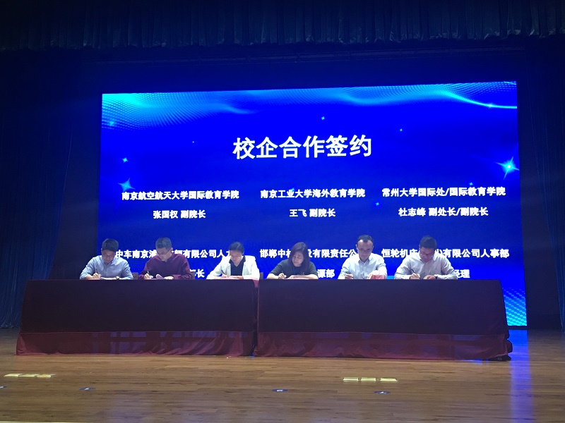 5月22日,江苏省教育厅和江苏省商务厅共同举办的“江苏第二届走出去企业外国留学生招聘会暨校企合作国际人才网(走出去人才地图)开通仪式”在南京信息工程大学举办,我校与恒轮机床(常州)有限公司签署了校企合作协议,并组织留学生前往招聘会现场,投递简历,与企业负责人面对面交流。