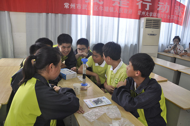 为迎接“世界环境日”,宣传环境保护知识和理念,5月31日下午,牛塘镇人民政府联合常州大学环境与安全工程学院赴武进区牛塘初级中学举办主题为“蓝天保卫战,我是行动者”的志愿活动。