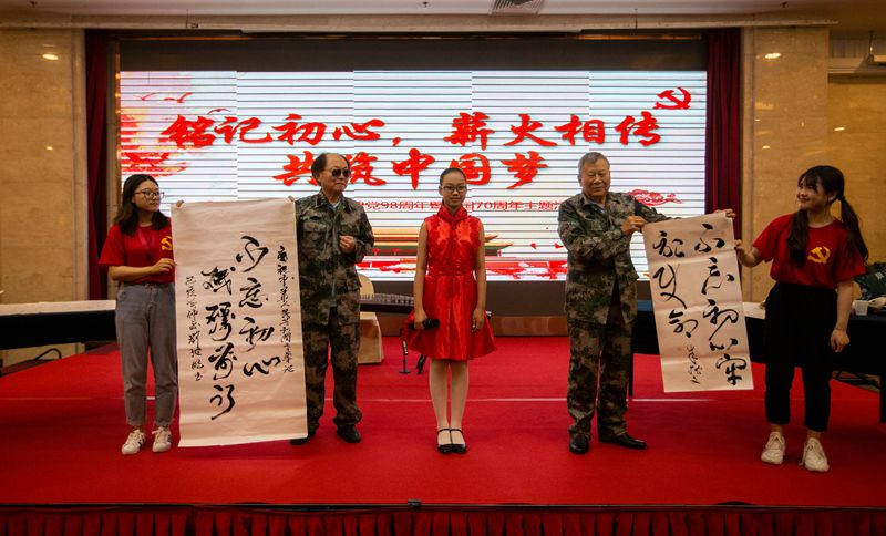 活动在军休干部们嘹亮的军歌声中拉开帷幕。在活动现场,青年党员、团员、志愿者与退役军人老党员在一起,以文艺表演的形式上一堂特殊的党课,一起倾听历史的回响,追寻红色的记忆,共同重温初心,感悟初心,践行初心,为党和国庆祝生日。