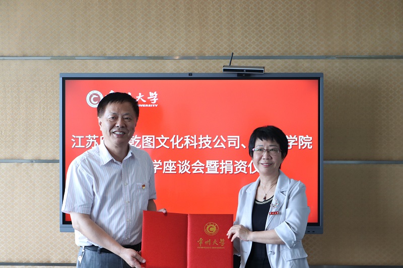 黄欣代表印象乾图文化科技有限公司作了发言,他就公司的主营业务、公司规模、旗下品牌和产品案例等方面进行了简要介绍。他提到,乾图高度重视与常州大学艺术学院合作办学,他希望充分发挥双方优势,与艺术学院在党建、专业建设、大学生创新创业等方面开展广泛的合作与交流,实现互利双赢并形成长效机制,推动双方不断提升合作水平、合作质量。