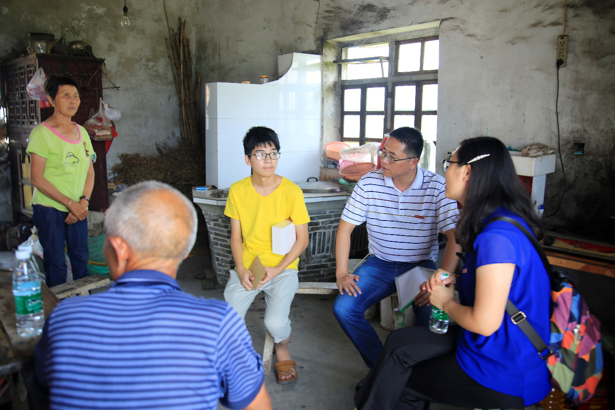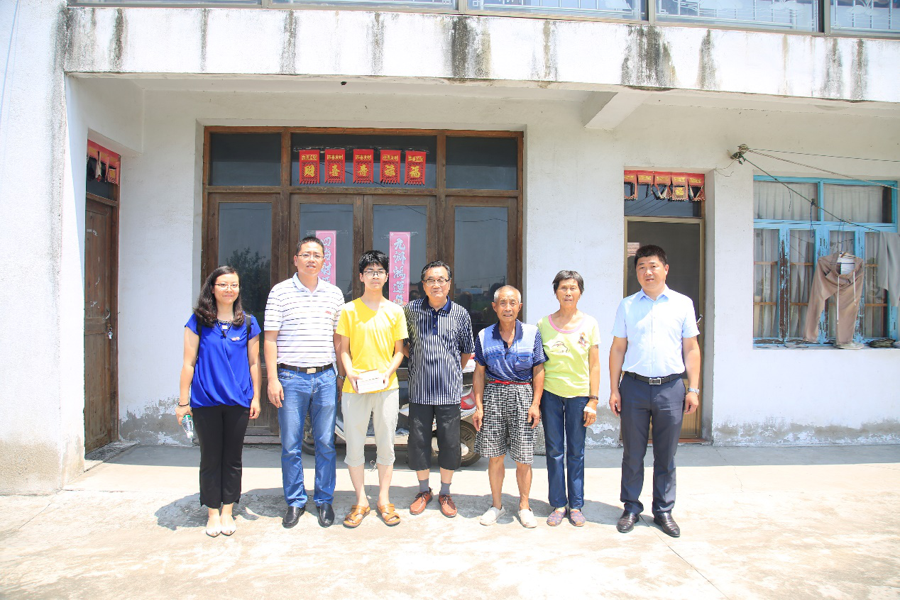 7月29日上午,机械工程学院城市轨道交通学院党委副书记葛涛、校学生工作处助学管理中心刘婧老师及学院相关辅导员一行,前往南通市如东县岔河镇振河村看望慰问学校车辆工程专业录取的2019级困难家庭新生姚懿航,并送去了慰问品和慰问金。如东县马塘高级中学高三年级主任张志祥、马塘夕阳红助学基金会老师也一同前往。