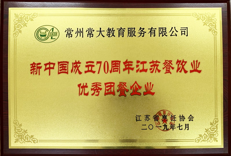 近日,常州常大教育服务有限公司荣获由江苏省烹饪协会颁发的“新中国成立70周年江苏餐饮业优秀团餐企业”荣誉称号。