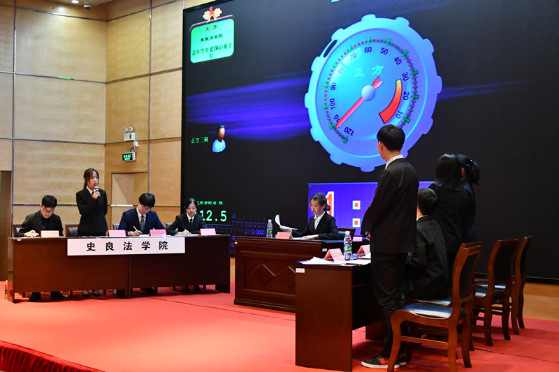 周有光语言文化学院、史良法学院代表队围绕“青年学生爱国心重于行还是行重于心”辩题展开立论陈词、辩驳论、辩质询、自由辩论,比赛过程中双方选手旁征博引、激烈攻辩,辩手精彩的辩论赢得了现场师生的阵阵掌声。最终经评委举牌表决,周有光语言文化学院代表队赢得冠军,史良法学院代表队获得亚军,周有光语言文化学院的王超凡同学获得“最佳辩手”称号。