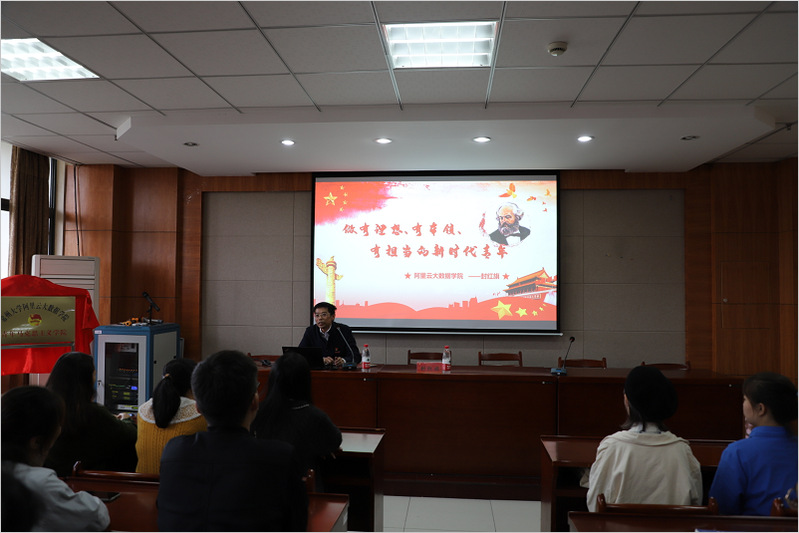 10月18日下午,阿里云大数据学院青年马克思主义学院揭牌仪式在逸夫楼516室举行。院党总支书记封红旗、校团委副书记蒋琳、院党总支副书记常愉出席揭牌仪式。