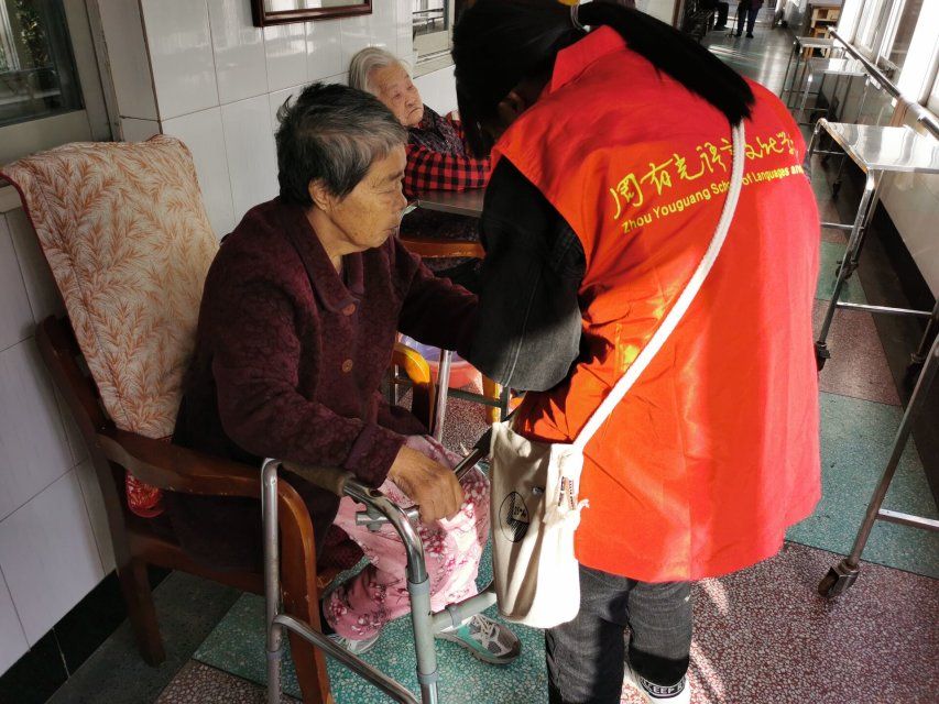 近日,周有光语言文化学院开展“关怀老人家 红心驻夕阳”素养公开课实践课暨夕阳红敬老院志愿服务活动。志愿者们前往武进区夕阳红老年康乐中心,送上温暖慰问。
