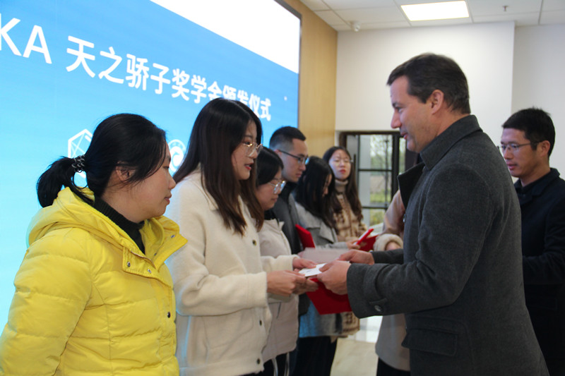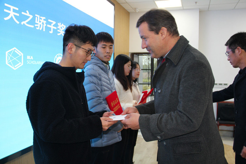 吴荷平、Stephan Stalder共同为获得本年度“德国IKA天之骄子教育奖学金”的研究生颁发证书和奖金。