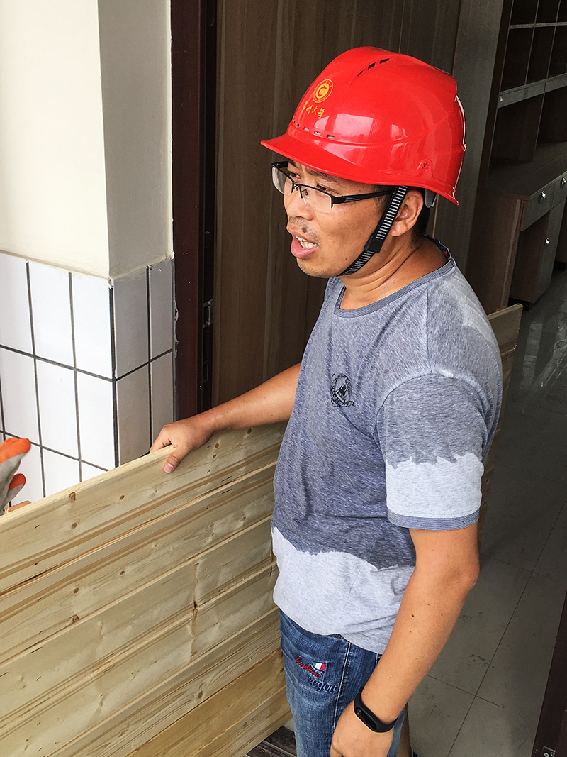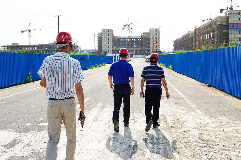 西太湖校区有两个特别的职能部门——他们办公室的墙上常年挂着的校区总平图和一沓工程项目跟进表总是那么引人注目。铁皮柜上的安全帽摆放得整整齐齐,摆放在门口的雨靴和防钉鞋上还残留着没有完全刷净的尘土。两个部门办公室的门虚掩着——工作人员好像不在,而不远处会议室里传来的据理力争的声音却让我们看到了为西太湖续建工程方案热烈讨论的两个部门的全体工作人员。这两个部门便是西太湖校区管委会和基建处,两个部门工作人员各为12人,平均年龄不到37周岁。2小时后,项目方案研讨会结束了,他们顾不上休息,而是径直走向在建工地,工程一线的走访和方案优化研讨几乎成为这两个部门每周的“必修课”。