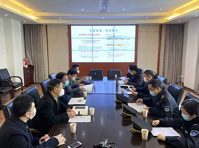 3月6日上午,常州市卫生监督所副所长谈立峰、武进区卫生监督所支部书记时虎良一行联合检查我校新冠肺炎疫情防控工作。党办校办、采招办、保卫处、后勤管理处负责同志陪同检查。