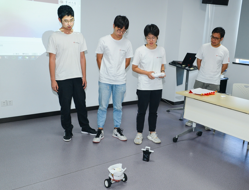 自从6月30日《你听说的高大上由你来实现——华院 智院2020暑期创新训练营等你来挑战》项目任务发布以来,同学们自选题目并成立机器学习组、无人机组、倒立摆组、平衡车1组与平衡车2组等五组学习战队。在结营活动中,各组同学通过精彩的PPT汇报答辩展示了训练营期间的学习成果,并进行了作品实物演示。在汇报答辩过程中,评委专家对每一组作品均给予点评并给出改进建议。汇报展示后,与会的领导、老师们为同学们颁发结业证书,并对五名优秀学员进行了表彰。( 通讯员/席帅 审核/徐淑玲 编辑/徐寅)