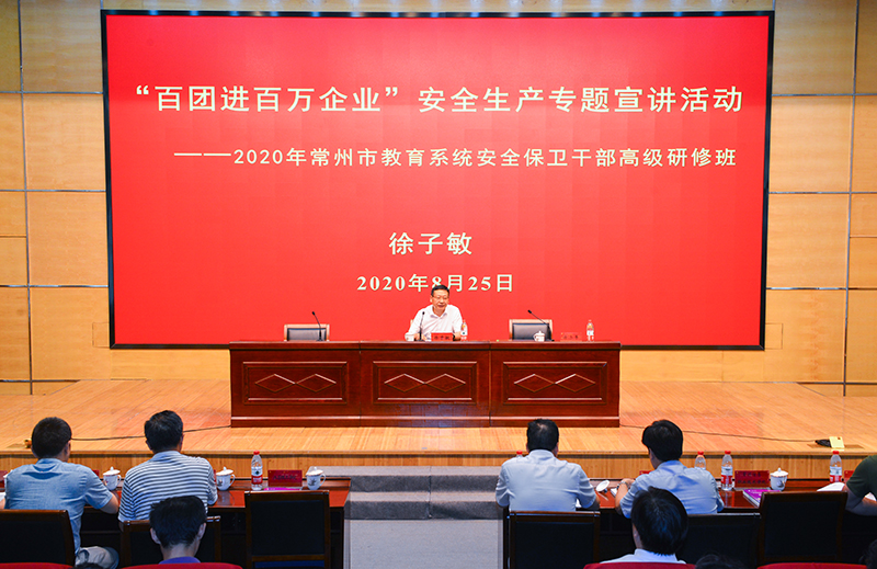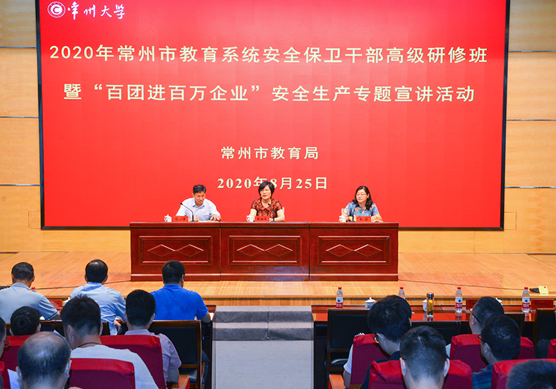 8月25日,常州市教育系统安全保卫干部高级研修班暨“百团进百万企业”安全生产专题宣讲活动在我校举办。江苏省委教育工委副书记、省教育厅党组成员徐子敏,常州市教育局专职委员徐小平,常州市教育局政策法规处、安全保卫和维护稳定处处长王蔚等领导作安全报告。常州大学党委常委、副校长黄海燕出席开班仪式并致欢迎辞。