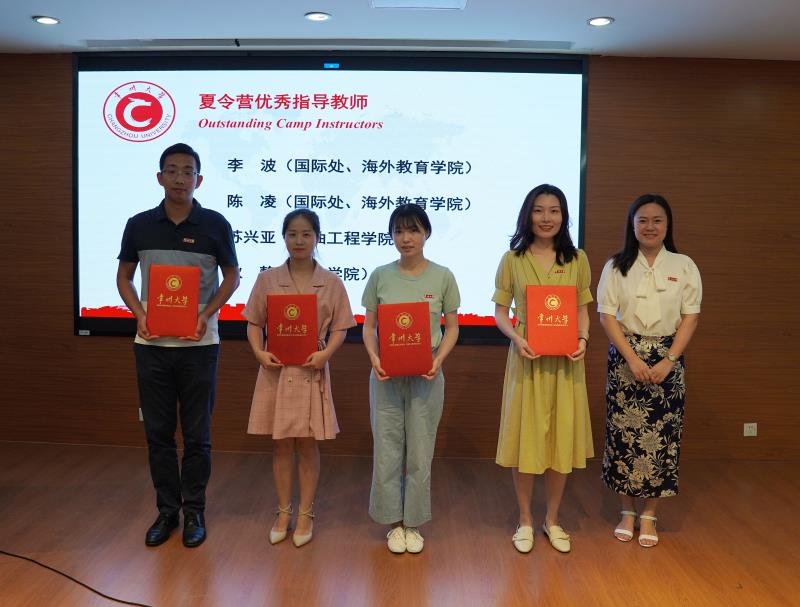 现场全体师生通过视频回顾了夏令营系列活动及留学生学习成果。国际交流处处长、海外教育学院院长钟璟在致辞中指出,夏令营举办的汉语进修、中国画等系列体验活动,不仅让同学们更加深入地了解了中国古代文明和现代江南文化,还增强了同学们对常州大学的感情,增进了同学间的友谊。她建议留学生要海纳百川、胸怀世界,勤学多思、兼收并蓄,知行合一、逐浪前行。留学生代表、商学院2019级研究生何一诺在发言中表示,通过夏令营活动,自己的汉语水平有了明显进步,也结识了很多新朋友,非常感谢学校提供的机会,让留学生度过了一个难忘而又充实的假期生活。活动最后举办了夏令营优秀学员、优秀指导教师颁奖仪式。