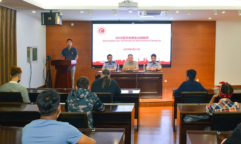 为帮助留学生熟悉中国法律法规,提高遵纪守法意识,近日,我校邀请常州市公安局武进分局出入境管理大队、常州市人民检察院为2020级留学生举办“出入境法规”和“禁毒教育”两场讲座,海外教育学院、国际交流处留学生管理人员,相关学院留学生辅导员及2020级留学生参加讲座。