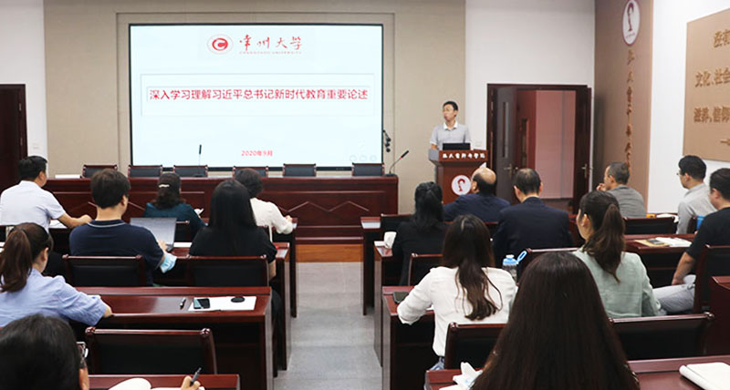 涂志明以习近平总书记教育思想的形成脉络为切入点,从国内国外两个层面,全面分析了教育工作对国家发展、民族未来的重要意义,深入阐述了习近平总书记关于教育思想的重要论述及其内涵。尤其就“坚持党对教育事业的全面领导”“坚持把立德树人作为根本任务”等“九个坚持”作了深入解读,集中阐释了“培养什么人、怎样培养人、为谁培养人”这一重大而根本的问题。讲座后,学院老师们就《习近平总书记教育重要论述讲义》如何深入贯彻课堂教学、如何达到入脑入心教育效果进行了深入探讨。(通讯员/卢彦名/ 审核/侯新兵 编辑/庄媛)