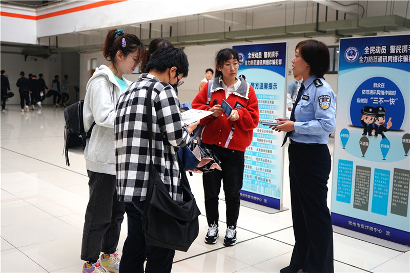 为切实增强我校学生的安全意识,提高学生的安全防范能力,10月16日上午,常州市反诈骗中心来我校科教城校区开展大学生防诈骗安全宣传活动。