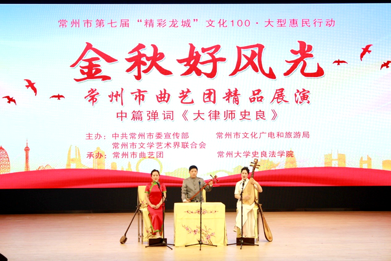 在史良先生诞辰120周年之际,10月28日,中篇弹词《大律师史良》在西太湖校区立艺楼礼堂展演。展演由常州市曲艺团、常州大学史良法学院承办。史良法学院相关负责人出席演出,史良法学院、经济学院、周有光文学院、外国语学院师生代表观看演出。
