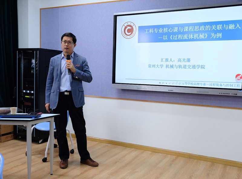 机械与轨道交通学院高光藩教授作题为《工科专业核心课与课程思政的关联与融入》的主题报告。他以国家和江苏省建设课程思政示范高校、示范专业和示范课程标准为切入点,结合自己多年课程思政教学经验,分享了如何将思政元素和专业课程进行自然融合的课程思政教学实践。