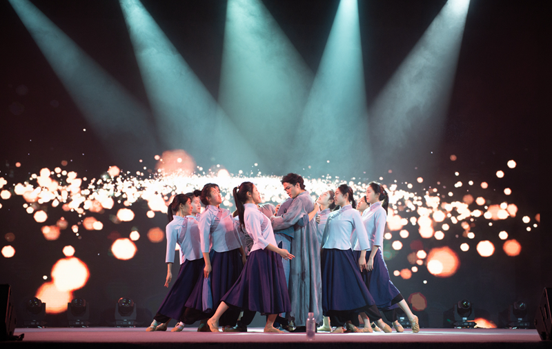 晚会以“青春踏歌,逐梦常大”为主题,由“忆往昔·岁月如歌”“看今朝·乘风破浪”和“绽青春·绚丽之花”三个篇章组成,表达了常大学子昂扬的青春风貌。