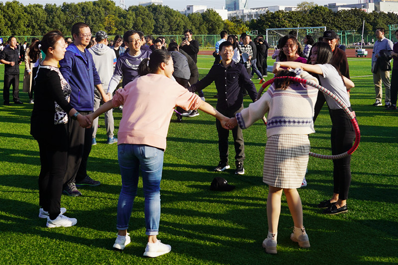 校工会精心设计了齐心探索、精诚合作和奋力拼搏三个项目。趾压板上跳绳和奔跑接力,虽有“痛点”和“难点”,却体现了常大人为推进学校改革发展齐心探索的勇气;一个个呼啦圈圈出的同心圆,映射了常大人为实现同一个梦想携手前进的决心和毅力;为实现目标,“大力士”们撸起袖子加油干,奋力拼搏,共赢未来。活动现场,欢呼声和呐喊声此起彼伏,气氛欢快热烈。