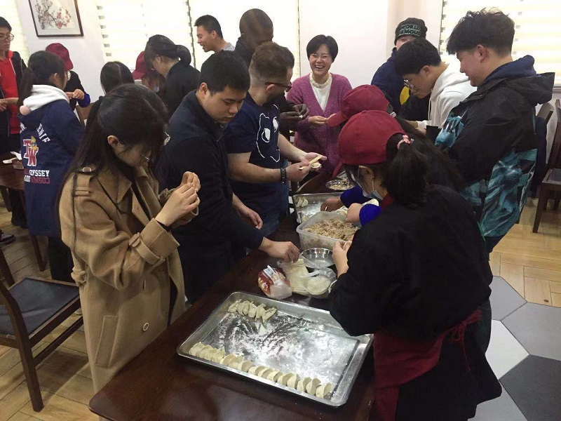 学院相关负责人向外籍教师介绍了中国饮食习俗和特色菜系,并详细介绍了中国人过年吃饺子的来历和传说。而后,同学们手把手教外籍教师包饺子,大家边包饺子边互相交流,同学们向外教请教专业课和英语学习经验,外籍教师和同学们分享了来华工作和生活的感受。现场欢声笑语,气氛热烈。