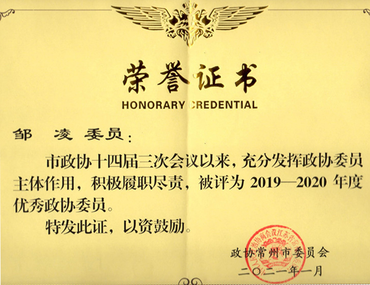 近日,我校微电子与控制工程学院教师邹凌被政协常州市委员会评为“2019—2020年度常州市优秀政协委员”。