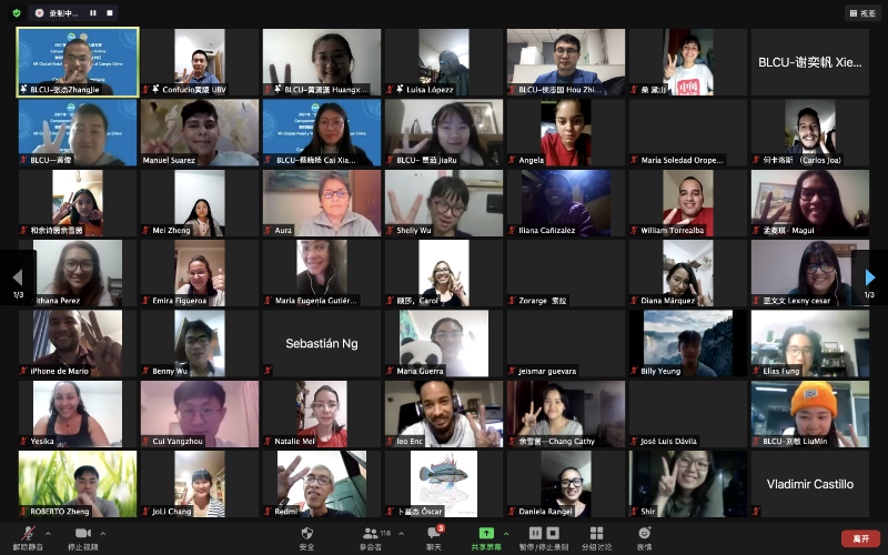 3月2日,我校委内瑞拉玻利瓦尔大学孔子学院与北京语言大学联合举办的云上夏令营开营,北京语言大学国际教育管理处副处长黄潇潇、我校孔子学院中方院长黄陵、夏令营教师团队代表、当地华人代表和全体营员等120余人参加了线上开营式。