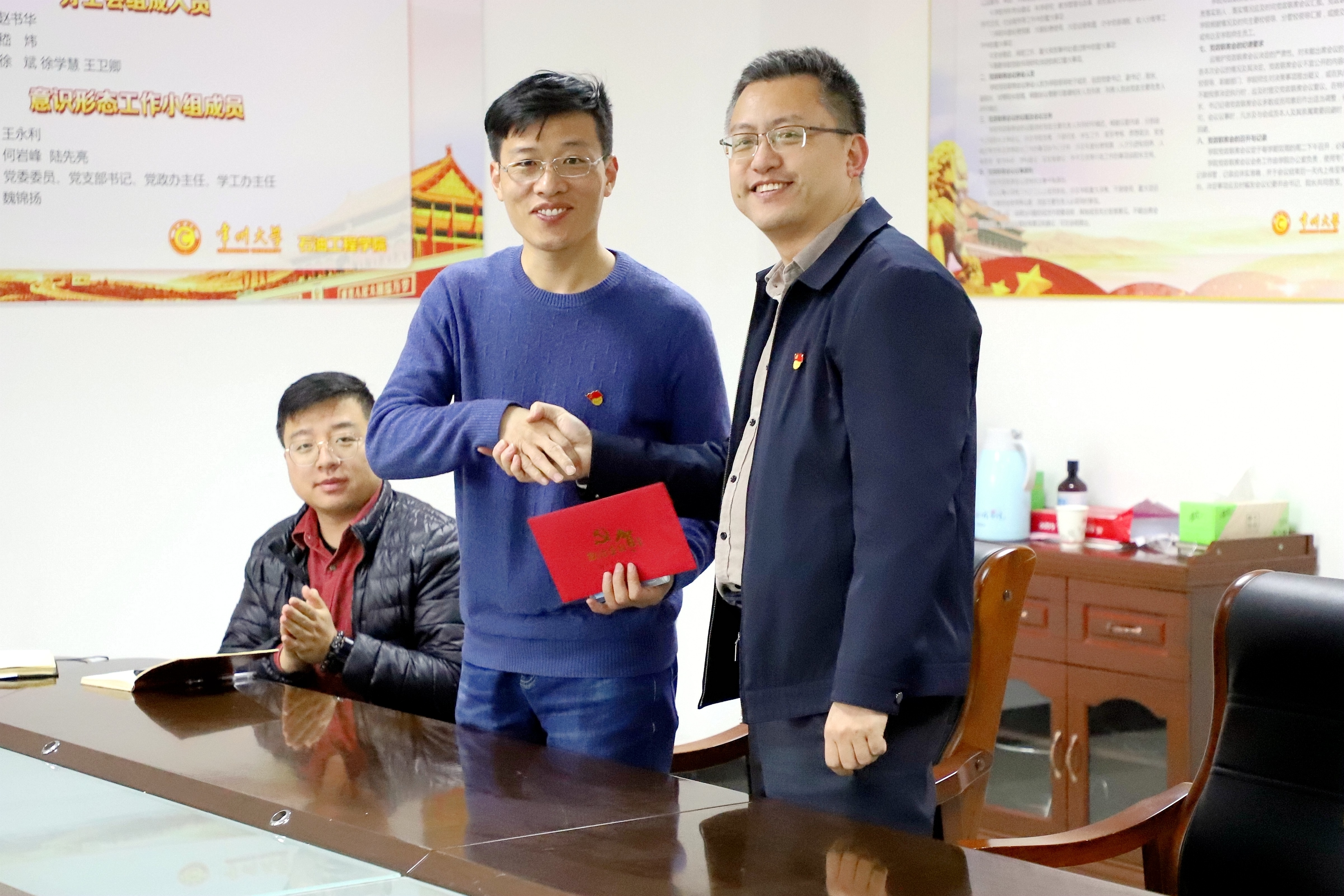 在支部成员过“政治生日”这天,每位党员回顾一遍入党志愿,提醒党员们在今后的日子里不忘初心、牢记使命,始终牢记党员身份,履行党员义务;在过“政治生日”时,支部书记徐慧带领支部党员重温了入党誓词,再次向党旗举起右拳庄严宣誓,提醒党员与时俱进、恪守承诺;院长何岩峰在给党员们过“政治生日”的同时,也与他们一对一进行了一场深刻的思想谈话,他要求党员同志时刻秉承“为祖国加油,为民族争气”的学院精神,牢记“明德 笃行 唯实 创新”的院训,用理想之光照亮奋斗之路,以信仰之力开创光辉未来;石工教师党支部为过“政治生日”的同志精心制作印有入党誓词和生日寄语的“政治生日”贺卡,记录了党员的入党时间和来自党组织的深深祝福,让党员留下一份深刻的“政治生日”印记,激励他们充分发挥党员的模范带头、示范引领作用;何岩峰为党员送上政治生日贺卡和生日祝福,鼓励他们继续发扬党的优良传统,不断提升教学能力和科研水平,进一步提升石工专业人才培养质量,支部成员也纷纷送上最诚挚的生日祝福,把党组织的真诚问候送到党员的心坎上,让党员真切感受到党组织的关怀和温暖;过“政治生日”的邵冬冬老师表示,将时刻牢记党员身份,履行党员义务,践行党员模范带头作用,为人民服务,为社会服务;支部成员分别分享了自己的科研成果和教学经验,并展开深入交流,拓宽了自己的科研视野。