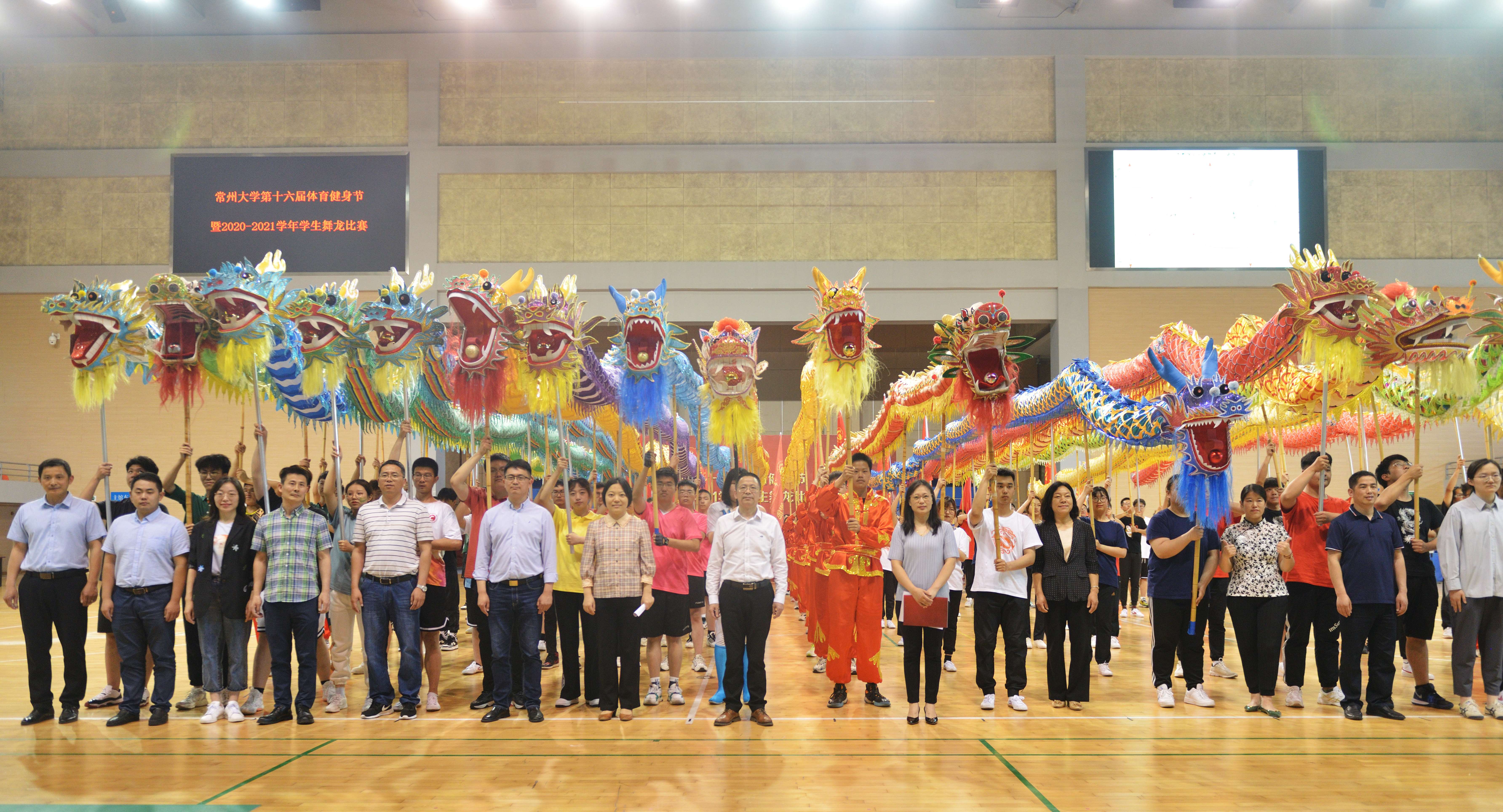 为弘扬中华传统龙文化,增强广大青年学生的文化自信,彰显我校“双龙”文化特色,为建党100周年献礼,5月9日,常州大学第十六届体育健身节暨2020-2021学年学生舞龙比赛在科教城校区体育馆举办。党委常委、副校长陆锦冲,各二级学院相关负责人参加开幕式。