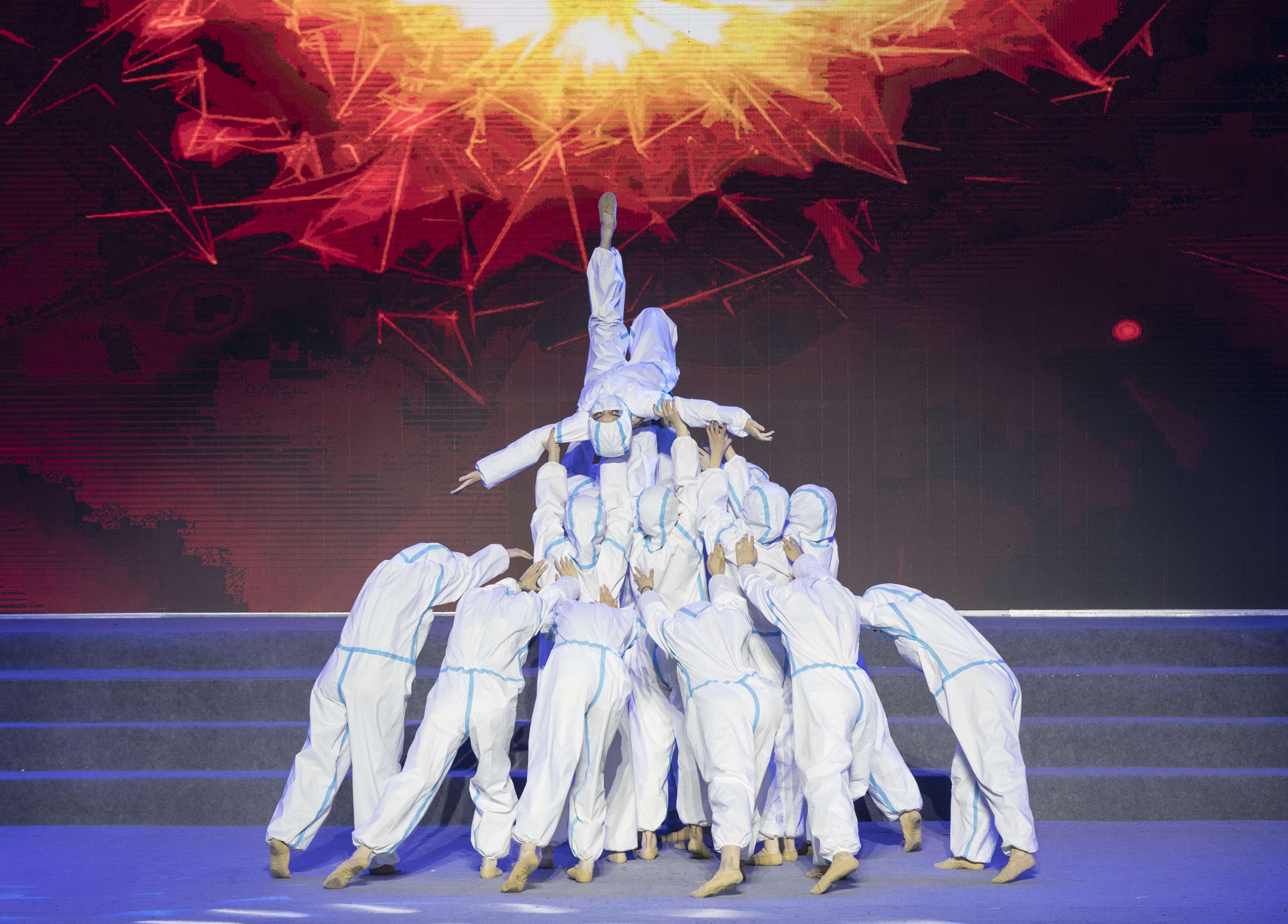 “峥嵘岁月”篇章中,诗歌朗诵《我是共产党员》讴歌了共产党人的初心使命和理想信念;舞蹈《抗联巾帼》演绎了女战士们可歌可泣的巾帼英雄传;当代青年在音乐剧《白云溪上》穿越时空,与“常州三杰”开启心灵对话;教师舞团在舞蹈《映山红》中颂扬英雄楷模,抒发爱党情怀。“时代征程”篇章中,《中国力量》用刚柔并济的国粹武术彰显“四个自信”;《额尔古纳河》用柔美婀娜的舞姿展示美丽中国的缩影;器乐演奏《龙韵》中的丝竹管弦奏响了五千年的东方神韵;短剧《八百标兵奔北坡》讲述了青年的家国情怀;舞蹈《奔赴》诠释了舍生忘死、众志成城的抗疫精神。在“青春中国”篇章中,《歌曲联唱》宣告了奋斗是青春最亮丽的底色;《舞动青春》用动感街舞表达了活力四射的青春宣言;歌舞《灯火里的中国》描绘了祖国富强人民幸福的美好生活;合唱《祖国,慈祥的母亲》抒发了华夏儿女对祖国母亲的挚爱情深。汇演在全场高唱《歌唱祖国》的激昂旋律中圆满落幕。