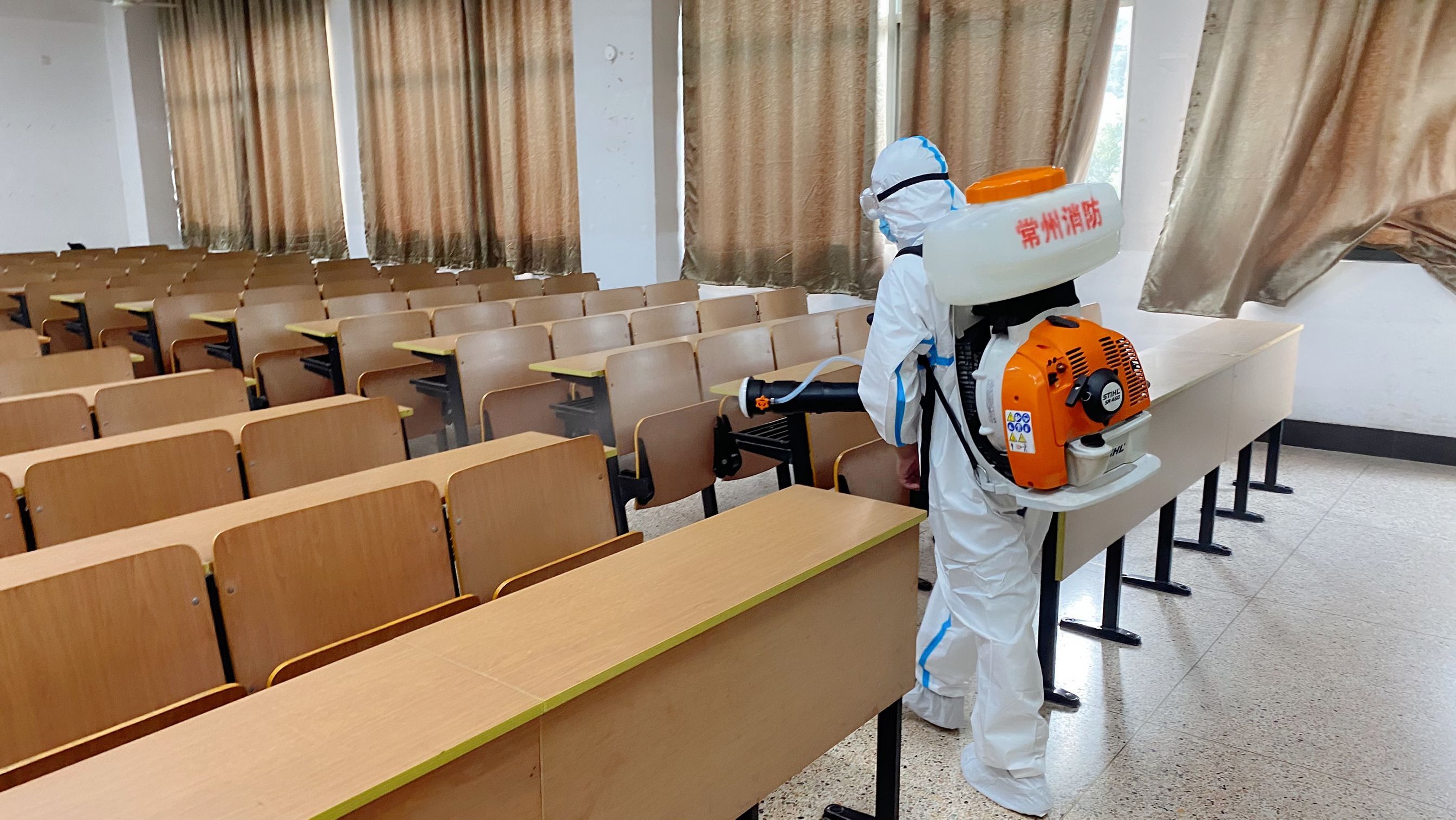 为全面落实省教育厅关于高等学校2021年秋季学期开学返校疫情防控工作的指导意见,迎接广大师生员工返校,9月1日,学校邀请常州市武进区消防救援大队对我校科教城校区公共区域进行全面消杀。