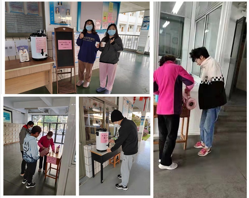 暖心姜茶,后勤服务有温度。疫情防控形势复杂严峻之时,恰逢气温骤降,为统筹做好防寒抗疫工作,后勤服务中心持续开展“初冬的第一杯暖心姜茶”活动。各校区食堂采用新鲜的生姜、红糖等原料熬制好姜茶,物业管理站点提前把姜茶配送到各个宿舍门厅的电热保温桶里。宿舍大厅内,公告栏张贴防寒友情提醒。管理员阿姨将一杯杯热气腾腾的姜茶送到同学们手中,叮嘱大家注意冬季防寒保暖,增强疫情防控意识。