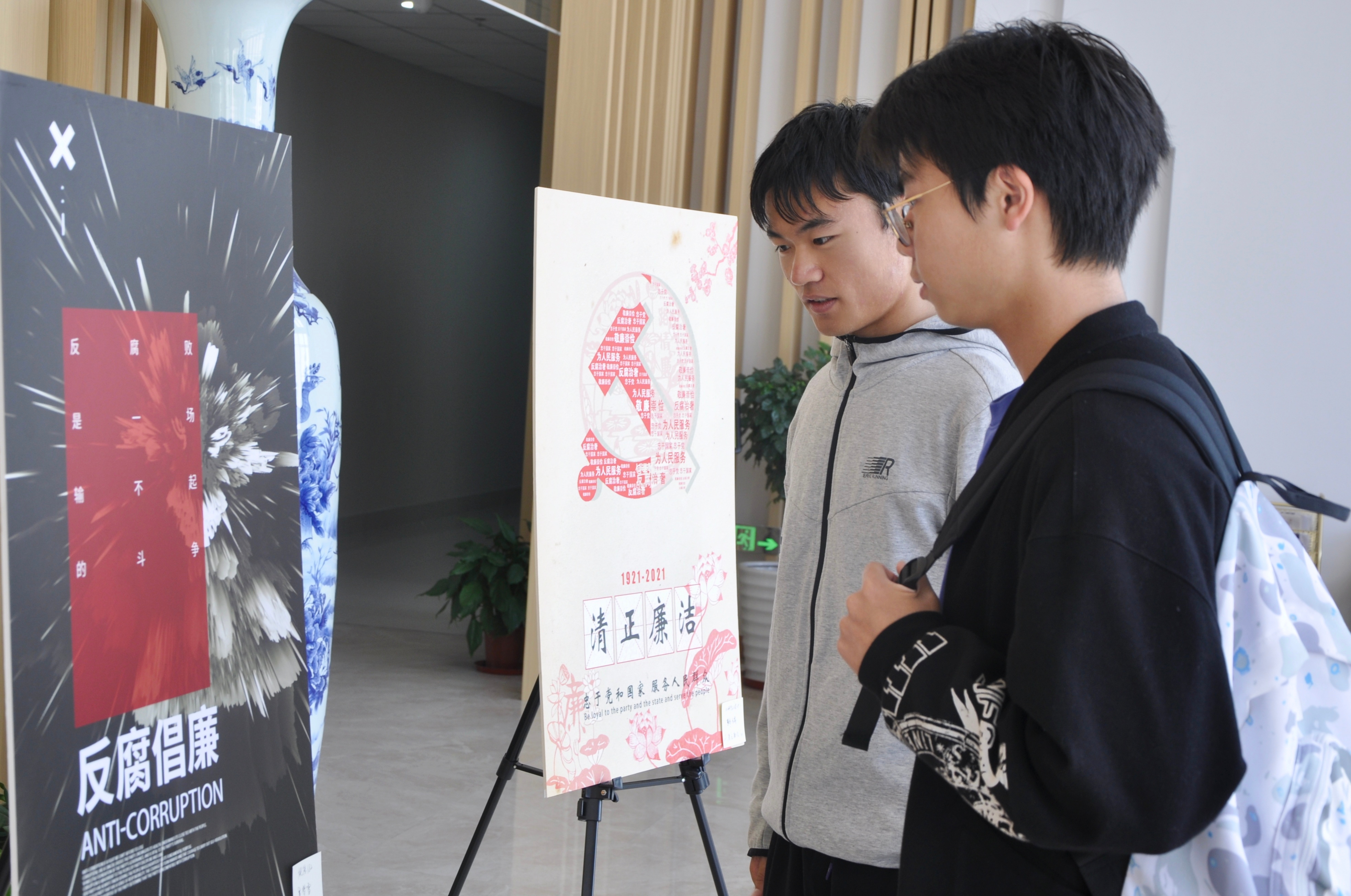 活动征集了师生国画、书法、海报设计等各类作品50余幅,作品以“反腐倡廉”为内核、以美术设计为表现形式,融思想性和艺术性于一体。一幅幅海报设计作品风格多样、立意新颖、内涵深刻,表达了师生对廉政文化的认识与理解、对党的无限忠诚、对祖国的真挚热爱,是商学院 刘国钧管理学院和美术与设计学院厉行不忘初心、拒腐防变的反腐倡廉校园文化建设的体现。