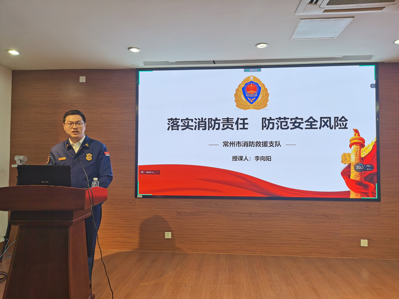 会上,常州消防救援支队防火监督科副科长李向阳结合近几年高校实验室火灾事故案例,从实验室火场逃生自救、常见消防隐患、日常消防安全管理、“1234+N”消防安全管理机制等进行了详细介绍,为我校义务消防员及其他师生消防安全意识和消防安全技能的提升给予了理论与实践指导。