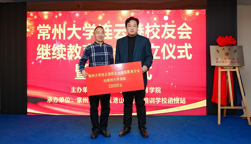 王思建代表连云港校友会继续教育分会向母校捐赠