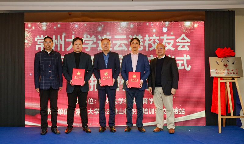 荆谷平、封红旗、韩江龙、卢发富共同为连云港校友会继续教育分会揭牌,并为新加入连云港校友会的组织机构成员颁发聘书。王思建代表连云港校友会继续教育分会向母校捐赠人民币贰万元。