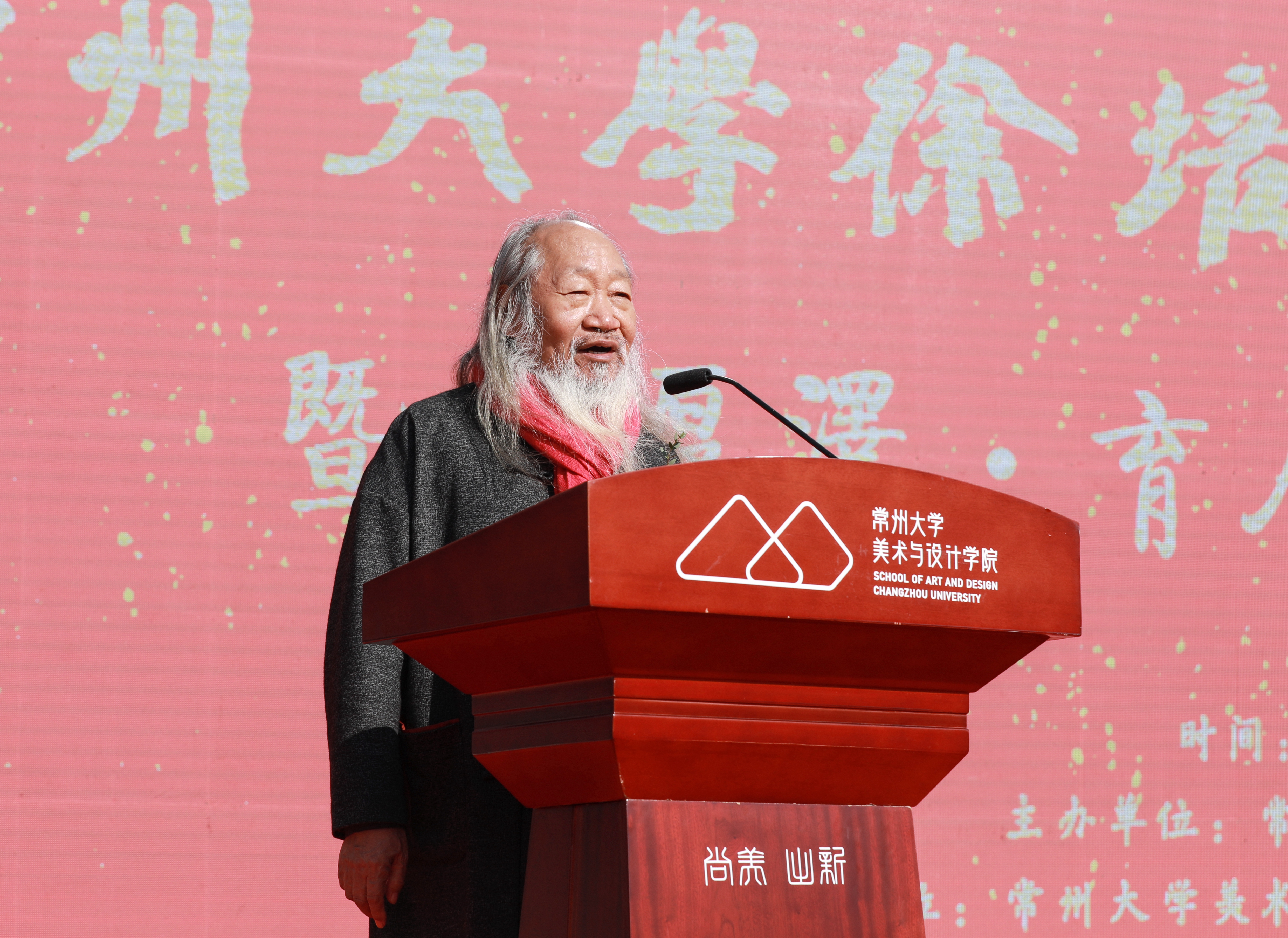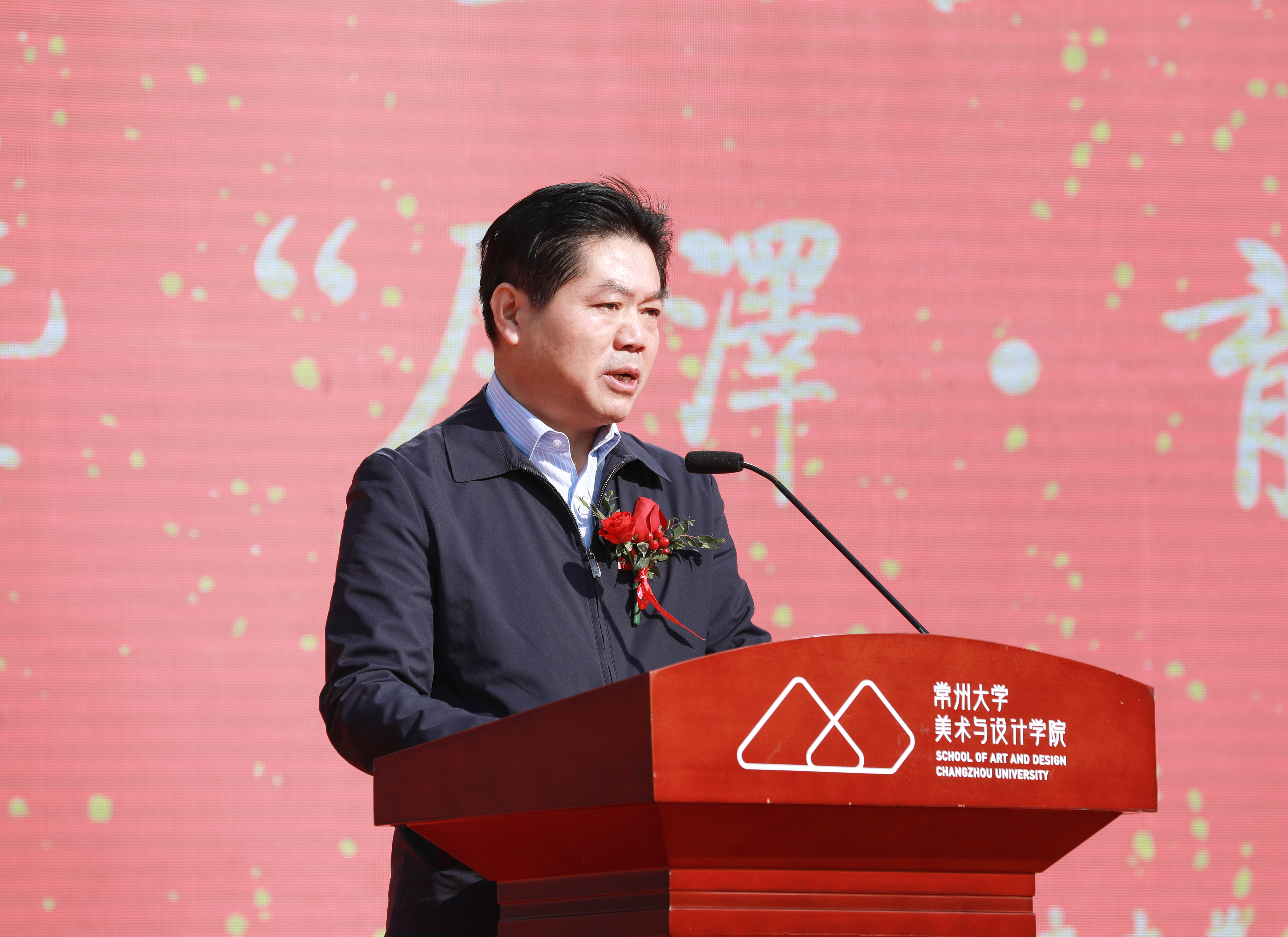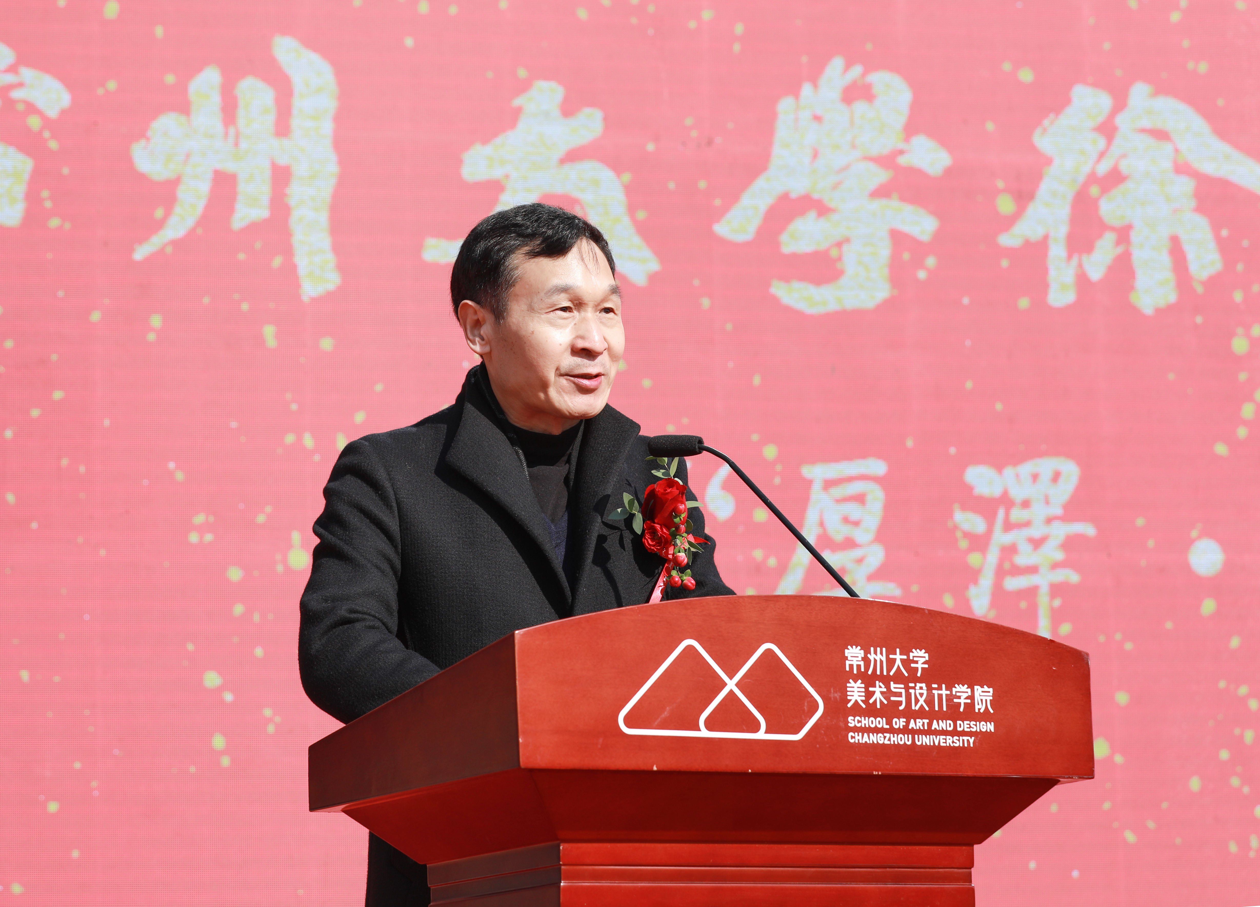 徐培晨致答谢辞,他表示,时代呼唤美育,艺术引领心灵,高校美育工作在“立德树人”“以美育人”“以文化人”方面具有不可替代的优势和责任担当。他希望通过馆校合作的实践探索,着力打造区域艺术人才教育中心和创作中心,引领学生树立正确的审美观念,陶冶高尚的道德情操,塑造美好心灵,推动相关学科建设和专业发展,助力常州大学建成特色鲜明的高水平地方领军型大学。