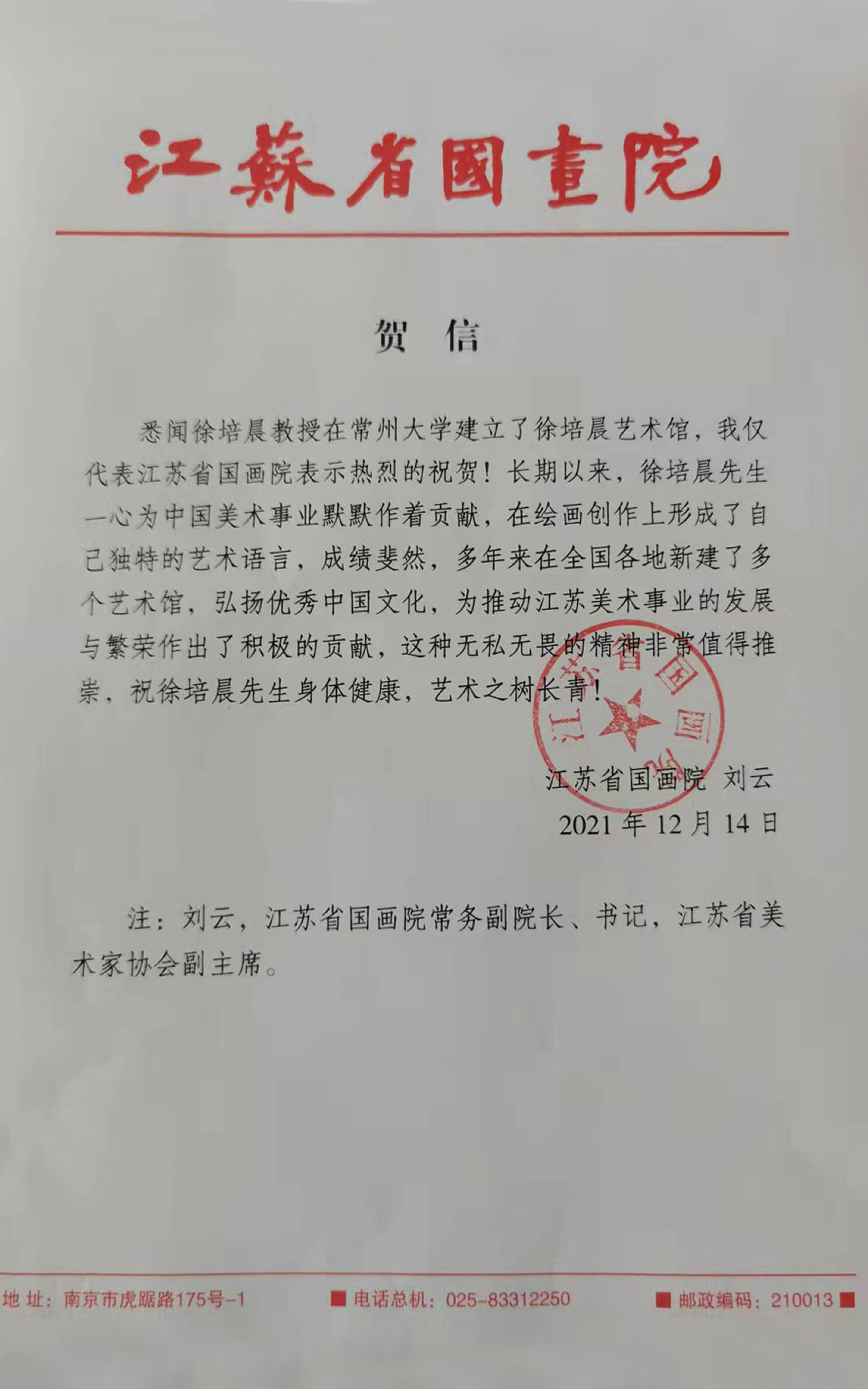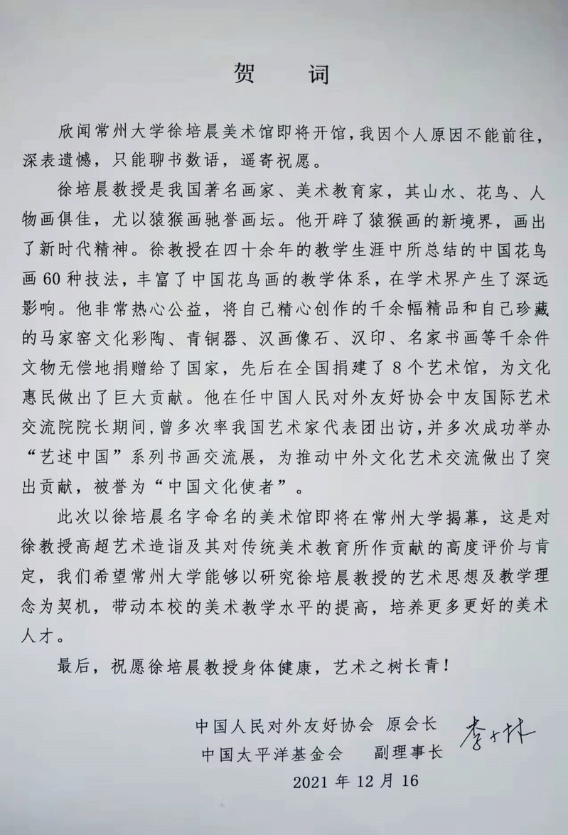 此次活动受到了高度重视,中国人民对外友好协会原会长李小林、江苏省国画院、中央文史研究馆书画院发来贺信,对常州大学徐培晨美术馆开馆表示祝贺。(通讯员/朱睿 审核/安宁 编辑/张茹)