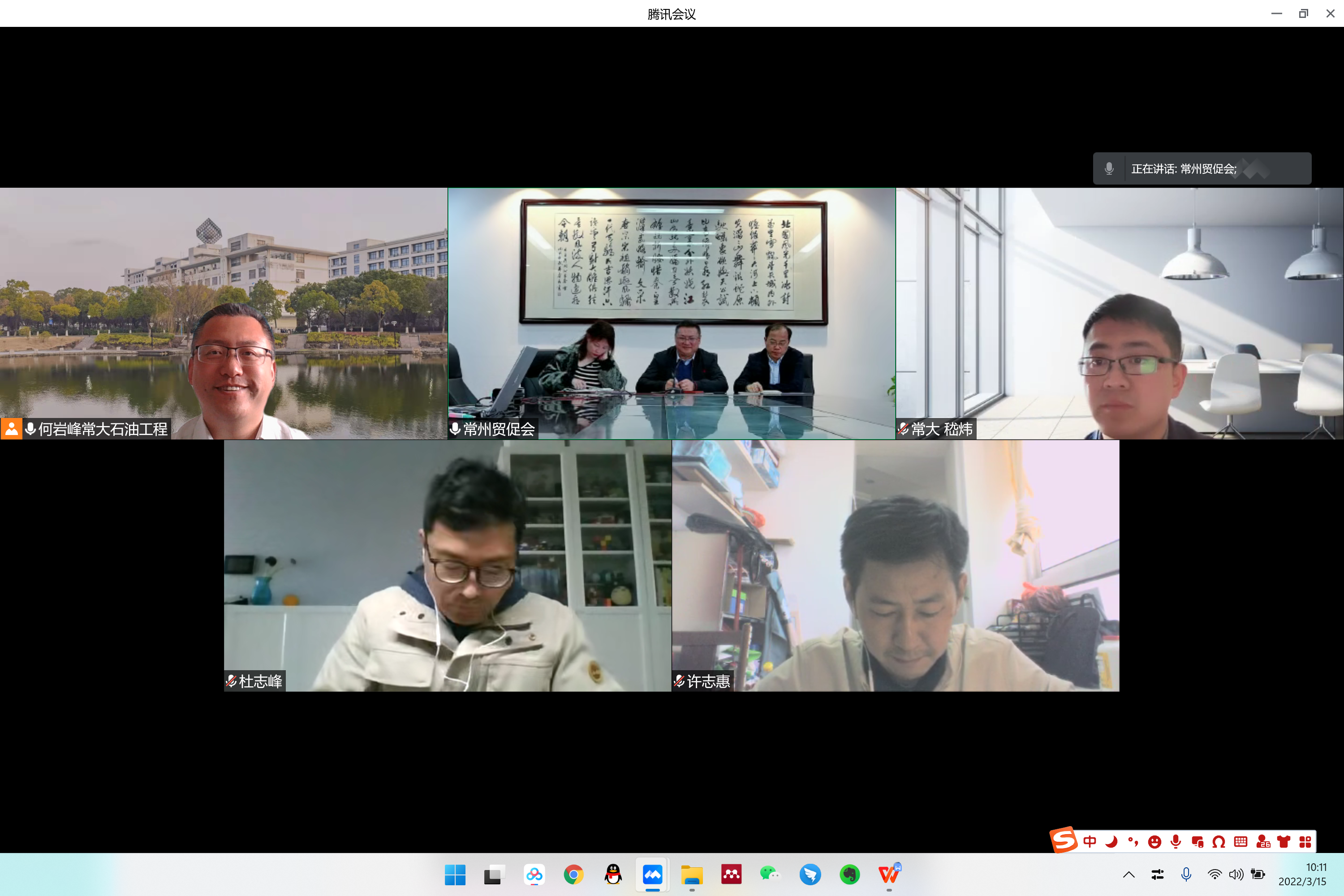 3月15日上午,中国国际贸易促进委员会常州市支会(以下简称“常州贸促会”)与我校国际交流处举行产学研合作线上座谈会。常州贸促会会长季斌、副会长欧阳俊、会务部(国际联络部)部长姚一枝,我校国际交流处处长何岩峰、跨文化研究院相关负责人出席会议。