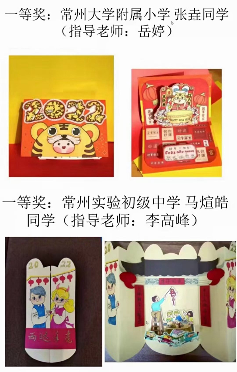 3月18日下午,常州大学国际交流处采用线上会议形式举办“中西2022虎年新春贺卡设计比赛”颁奖典礼。西班牙安达卢西亚大区教育厅国际项目服务部主任、常州大学-西班牙安达卢西亚大区孔子课堂外方院长Carmen,国际项目服务部教育技术顾问Teresa,常州市侨办侨务处处长秦嫣,常州市教育局统群处处长王建强,常州大学国际交流处处长何岩峰,常州大学-西班牙安达卢西亚大区孔子课堂中方院长徐萍列席典礼,来自安达卢西亚大区及常州的中小学校长、指导老师、获奖学生代表近30人参加典礼。何岩峰主持典礼。