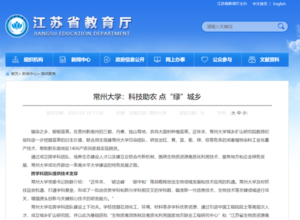 常州大学党委书记陈群介绍:“近年来,‘碳达峰’‘碳中和’等战略释放出生物领域发展和技术应用的机遇。常州大学及时抓住这些机遇,打通学科壁垒,形成了一批由优势学科和新兴学科相交叉的学科群,瞄准新一代信息技术、生物技术等关键领域进行攻关,增强源头创新与关键核心技术的研发能力。”