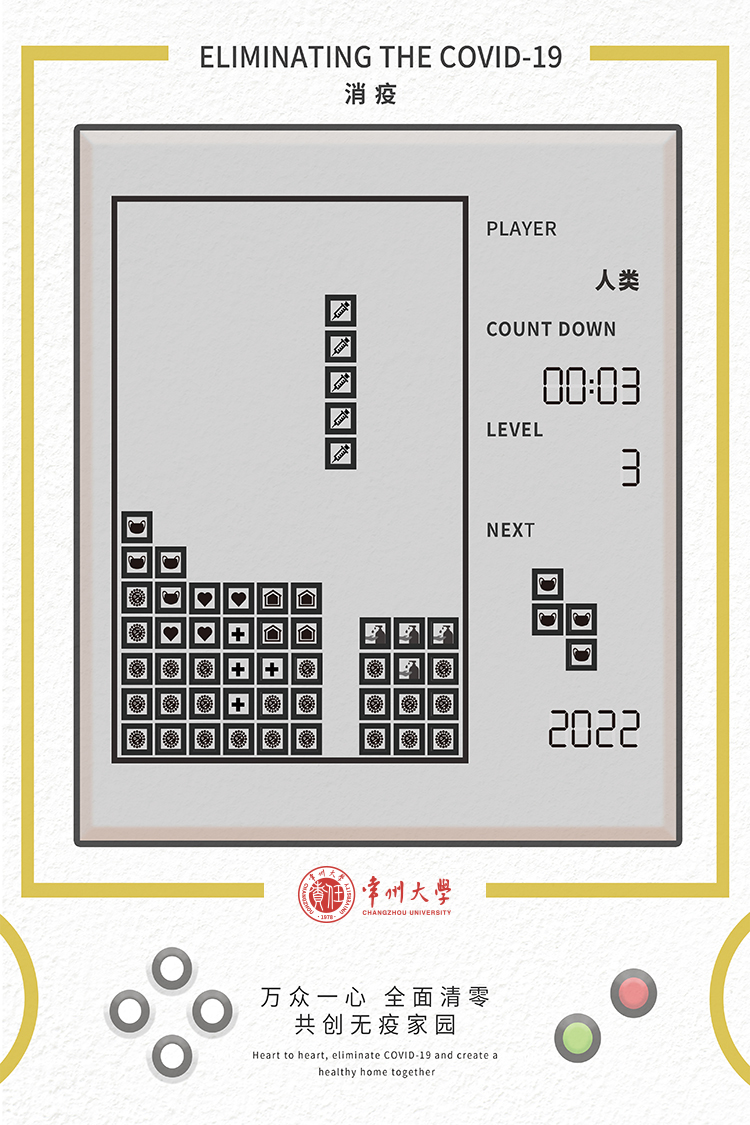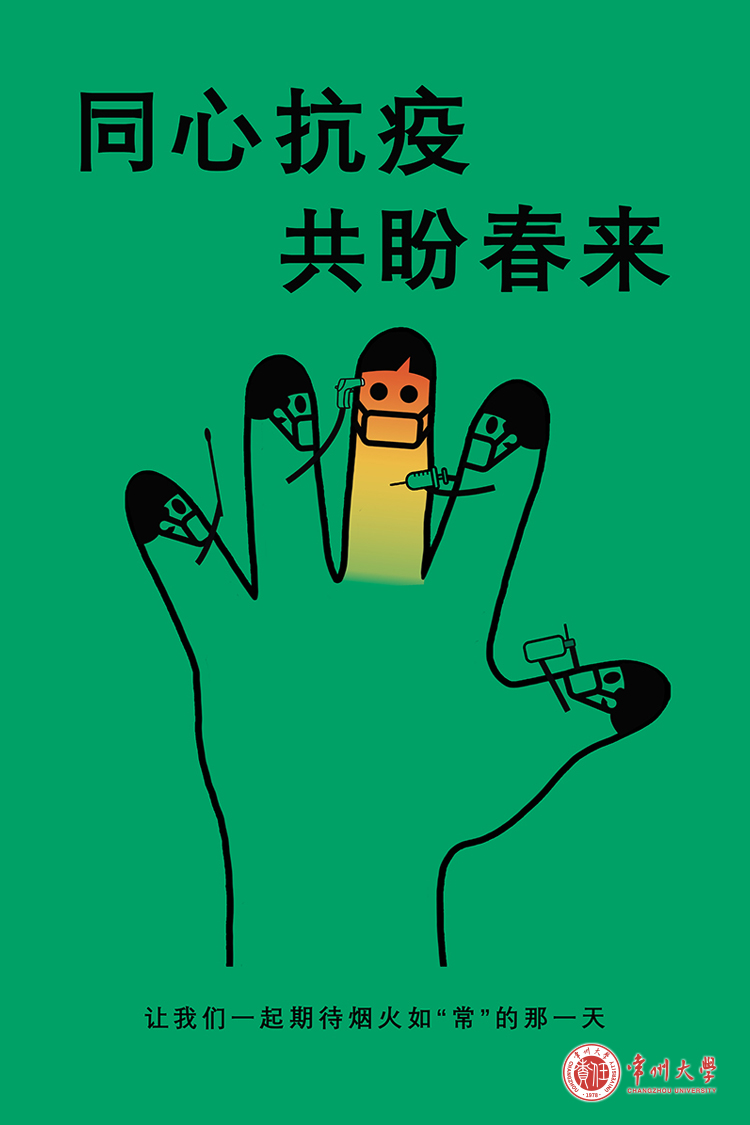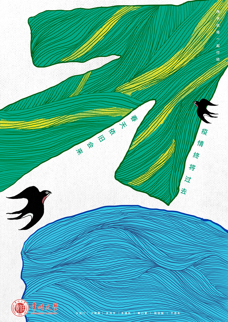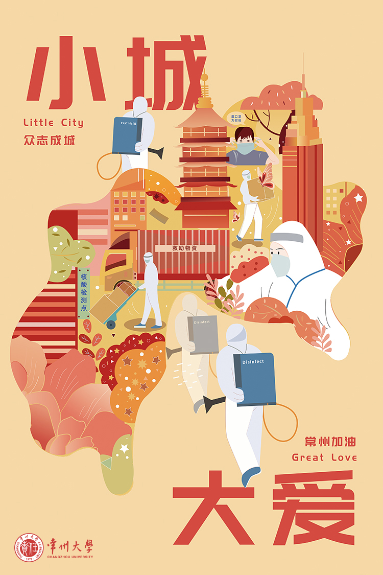 数媒192班陶雨露同学的作品《小城大爱》在众多作品中脱颖而出获得一等奖,她以常州地图为底,穿插象征和平友爱的常州市花和常州标志性建筑,描绘了常州人民众志成城抗击疫情的精神风貌,表达了同心抗疫、共盼春来的美好愿望。