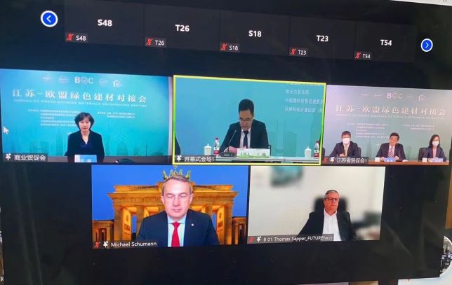 4月28日,中国贸促会江苏省分会、常州市商务局、中国贸促会常州市支会、住房和常州建设部(武进)绿色建筑产业集聚示范区共同举办的2022江苏—欧盟绿色建材对接会在线启幕。常州大学海外教育学院发挥自身优势,积极组织学生志愿者承担此次线上会议的现场翻译、文字翻译和会务对接等工作。