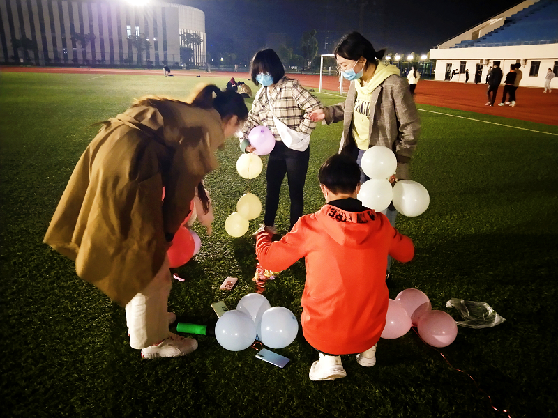 线下积极情绪培养小组每周六傍晚开展活动,社工同学充分发挥专业优势,秉持以人为本、助人自助的专业理念和平等原则,运用优势视角、萨提亚心理治疗等理论引导同学组成体验式、互动式的同辈支持小组,发挥同学的自主性和能动性,不断探索活动形式的新思路、新方法,将专业学习同丰富多彩的校园文化、志愿服务活动相结合。在社工的主持下,播放解压音乐,开展放松游戏,组员们积极互动,氛围轻松愉快,让组员的烦恼与压力在奔跑、嬉戏和气球的破裂声中随风消散,取得了良好效果。