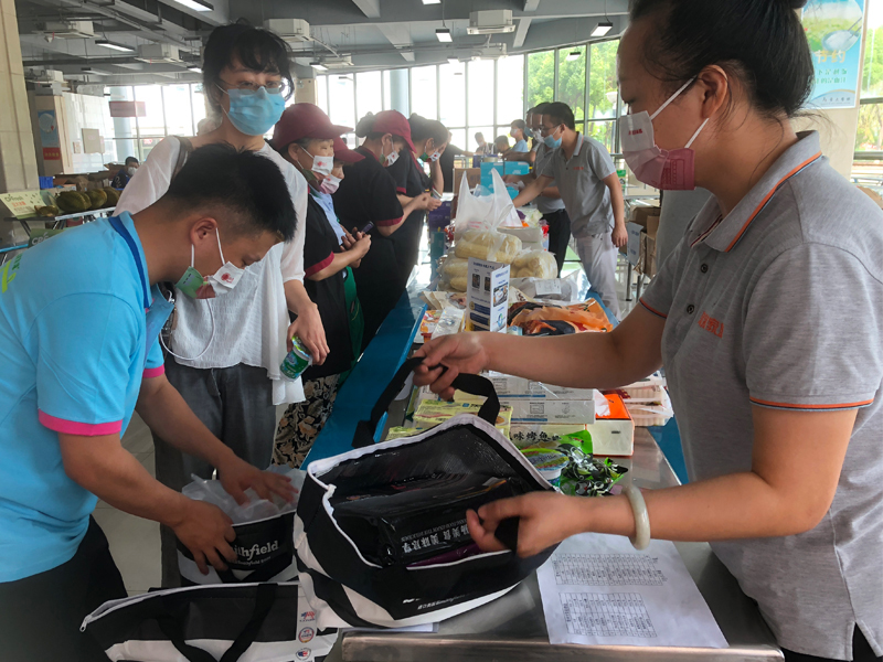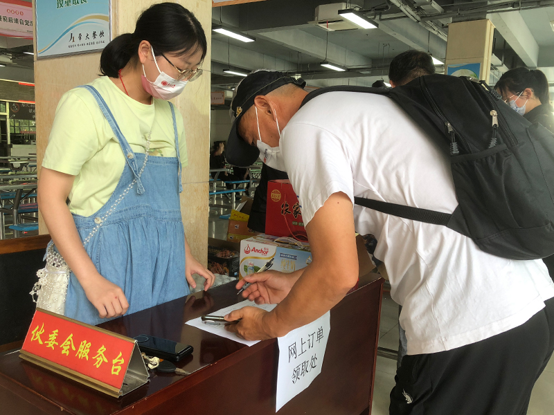 后服中心经过前期充分调研,了解教职工们的需求,筛选优质商家,甄选质量上乘、绿色健康的优质商品。此外还提前开通预订平台,教职工可通过常大云餐厅提前预定,充分利用“预售+展销”模式,率先实行线上预售、货源直采、校内提货。由于天气炎热,冷藏冷冻类等特殊商品不易储存,中心采供部特意联系供货商,贴心为教职工准备了保温袋,保护产品的品相和品质。
