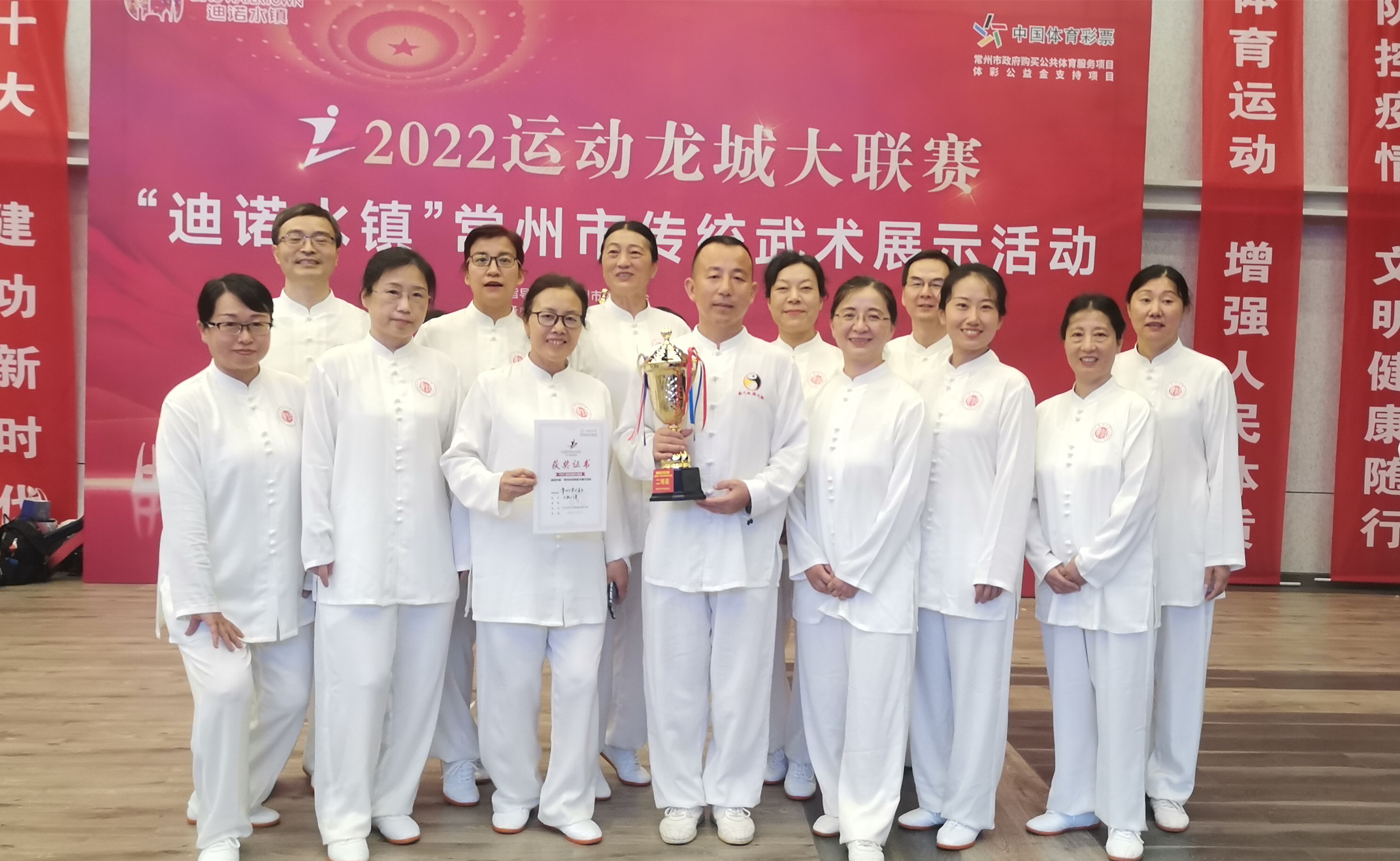 7月3日,2022运动龙城大联赛-常州市传统武术展示活动在中华恐龙园举办。来自全市的60支代表队、近1500名武术爱好者参加比赛。我校教职工组成的太极拳代表队喜获二等奖。