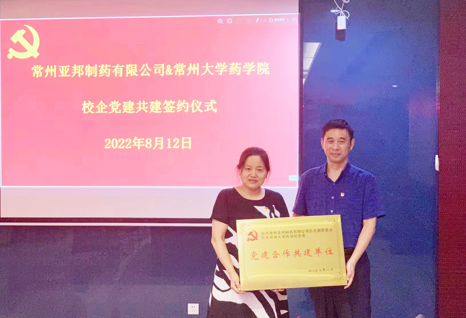 8月12日下午,常州大学药学院党委与亚邦制药党总支校企党建共建会议在常州亚邦制药有限公司(以下简称“亚邦制药”)六楼会议室举行。亚邦制药党总支副书记戴春雨、研究院院长王勇军,常州大学药学院党委书记王利群出席会议。亚邦制药党支部书记、专职组织员、组织委员、常州大学药学院教工支部书记及组织员参加会议。