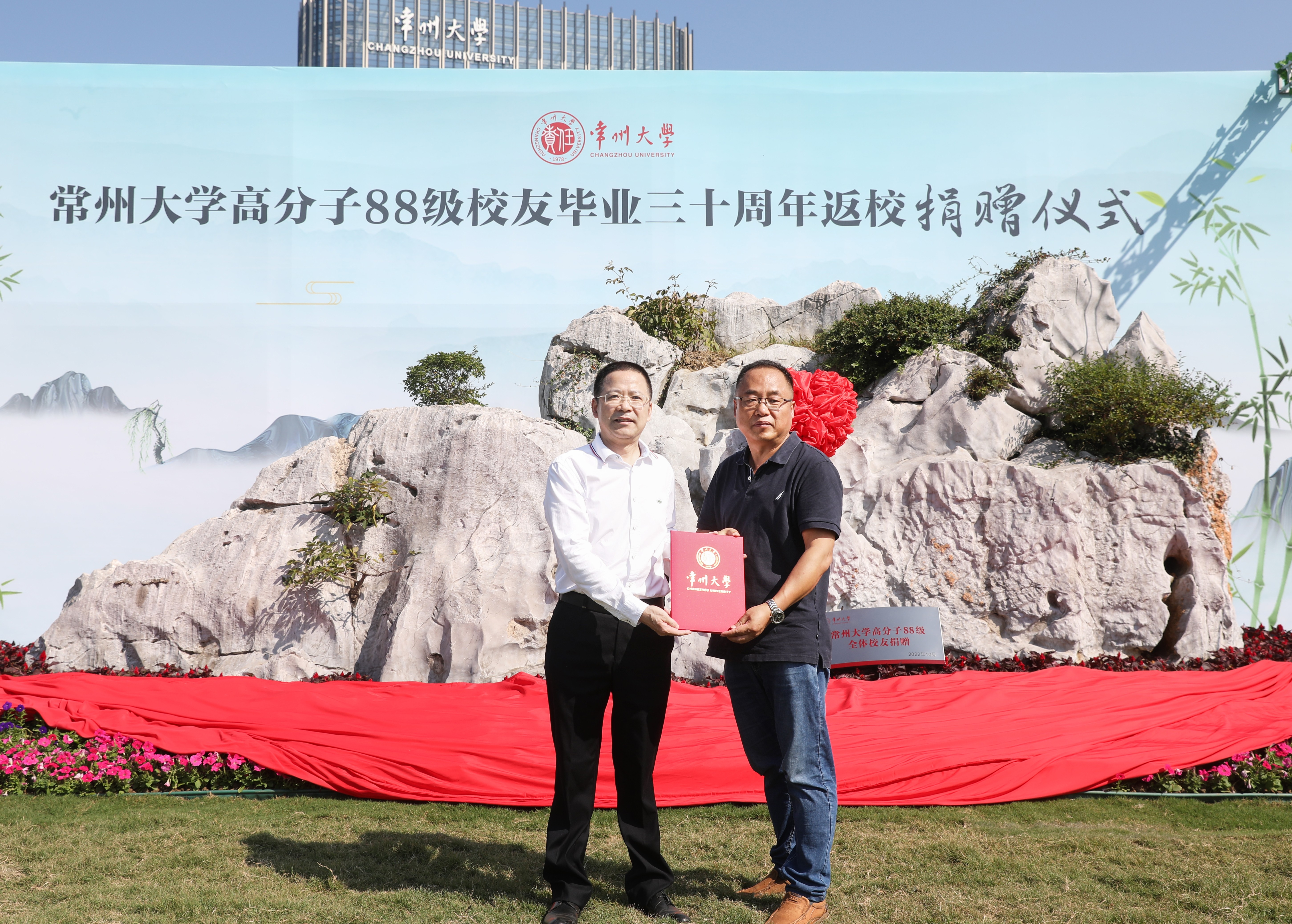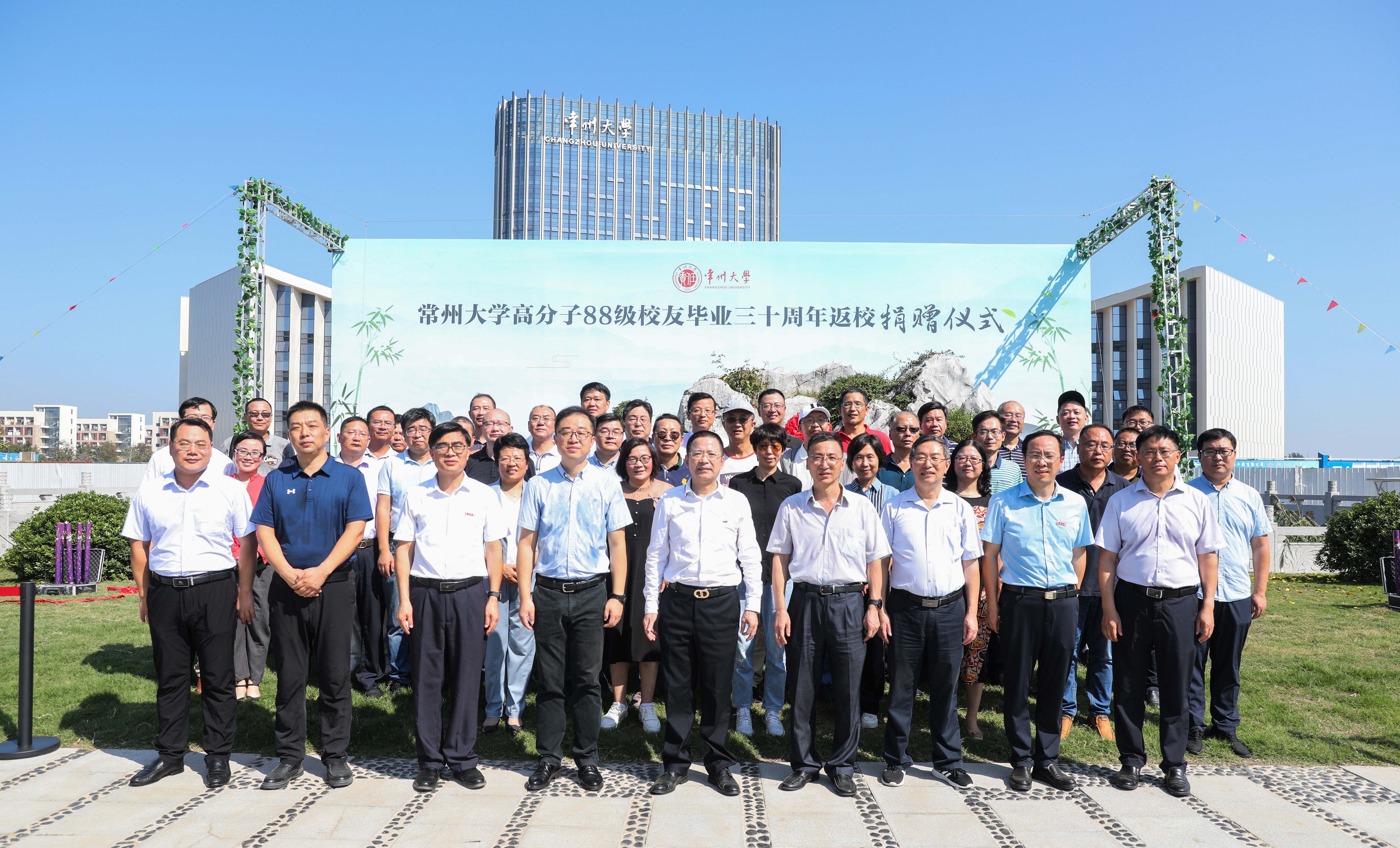 10月3日上午,常州大学高分子88级校友毕业三十周年返校捐赠仪式在常州大学西太湖校区“白云印象”主题公园举行,党委常委、副校长、校友总会副会长兼秘书长陆锦冲出席活动并讲话,无锡职业技术学院党委书记、常州大学无锡校友会会长、高分子88级辅导员龚方红,高分子88级全体返校校友,学校相关职能部门负责人,材料科学与工程学院党政班子全体成员出席活动。