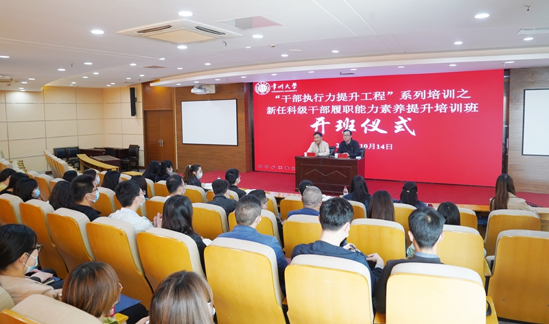 10月14日下午,我校“干部执行力提升工程”系列培训之新任科级干部履职能力素养提升培训班在科教城校区图书馆报告厅开班。组织部部长周刚出席并作开班讲话。