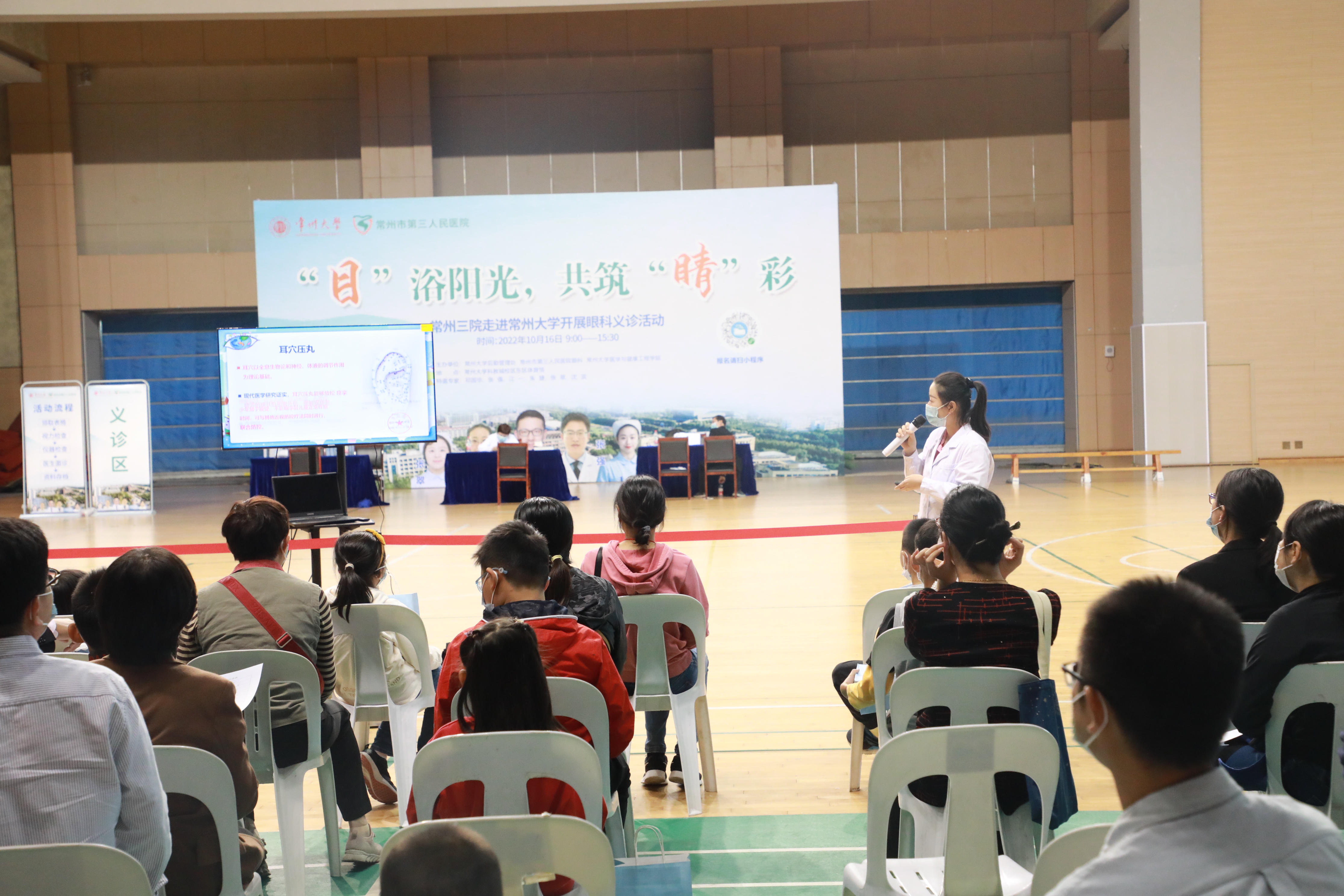 为宣传和普及健康用眼知识,增强我校教职工子女的爱眼护眼意识。10月16日,常州市第三人民医院(以下简称“常州三院”)与我校后勤管理处、医学与健康工程学院在科教城校区体育馆联合开展“我为群众办实事——‘目’浴阳光,共筑‘睛’彩眼科义诊”活动。我校150余名教职工携子女参加义诊。