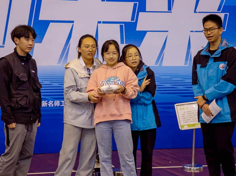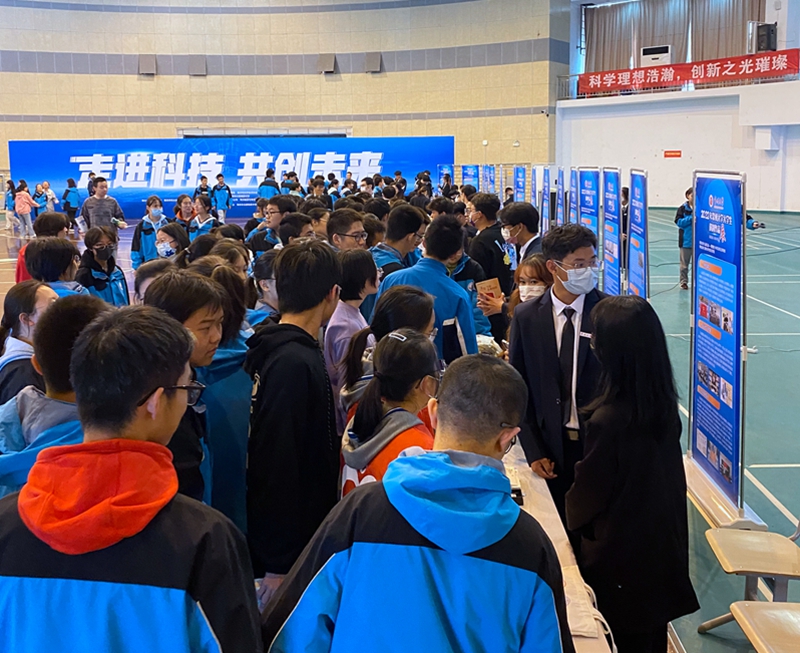 我校遴选的17个创新创业项目20余件创新创业成果分别在北郊高级中学体育馆、体育场进行了展演,展示了无线激光通信、国产EUV光刻胶引发剂等高端制造业科创项目,机甲大师系列机器人、无人机等兴趣类科创项目,有秸出膜范、新型冷却塔等生产领域创新项目等。我校师生向参观的高中生们详细讲解了各项目的设计功能与运行原理,并对同学们提出的问题进行解答与交流。琳琅满目的科创作品吸引了众多中学生前来观摩,引发了参观学生的极大关注,同学们在实际操控体验中学习了解科技知识,感受了科创魅力。