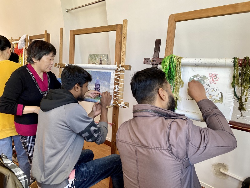 乱针绣是“常州三宝”之一,是我国国家级非物质文化遗产,常州乱针绣绣法自成一格,被誉为当今中国第五大名绣。在常州狄静乱针绣工作室,留学生代表们聆听了乱针绣的传承故事,亲手体验了指尖上的民间艺术,在穿针引线中领略乱针绣的魅力,深切感受到了中国传统文化的博大精深。来自也门的留学生高飞兴奋地说道:“第一眼看到乱针绣,我以为是油画,没想是用针和线绣出来的,我被震撼到了,他们的手法是如此的高超。”
